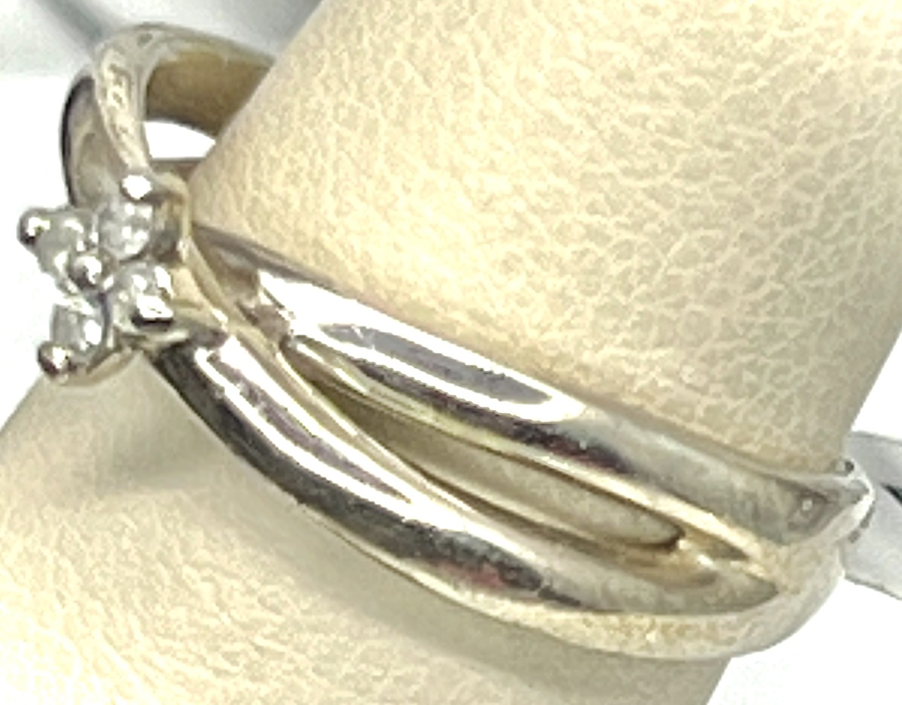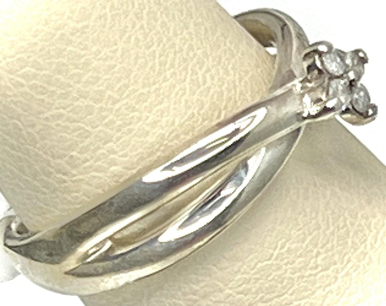 CHARMING STERLING SILVER RING ADORNED WITH A QUARTET OF DAINTY STONES, ARTFULLY ASSEMBLED INTO AN ENCHANTING FLORAL CLUSTER