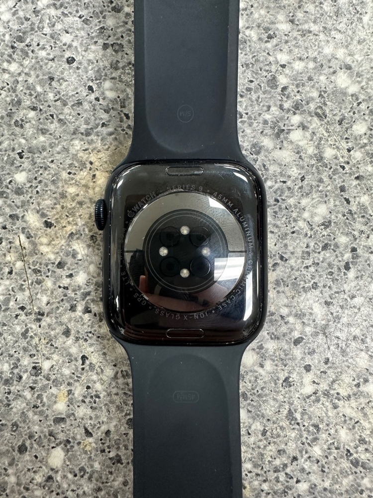 Apple Watch Series 9 (45mm, GPS + LTE) in sleek black with a matching black band delivers powerful performance and a bold, modern design. The bright, always-on Retina display makes everything easy to see at a glance, while the durable aluminum case is built for everyday wear. Stay connected without your iPhone thanks to GPS + LTE, allowing you to take calls, send messages, stream music, and get notifications on the go. Advanced health and fitness features include heart rate monitoring, blood oxygen tracking, ECG, sleep tracking, and workout insights to help you stay active and informed. With fast performance and all-day battery life, this Apple Watch is perfect for work, fitness, and daily life.