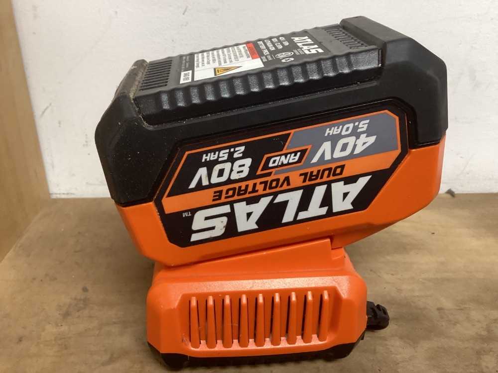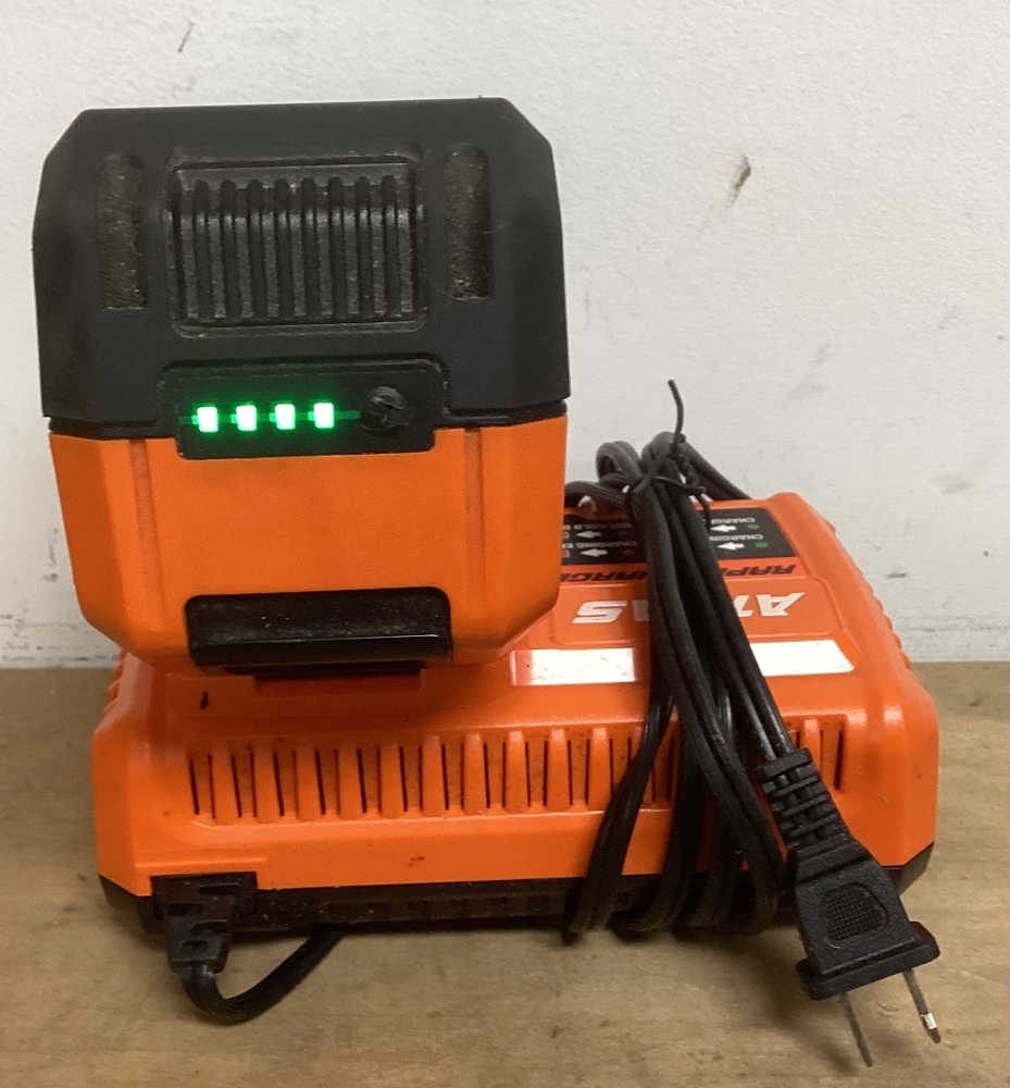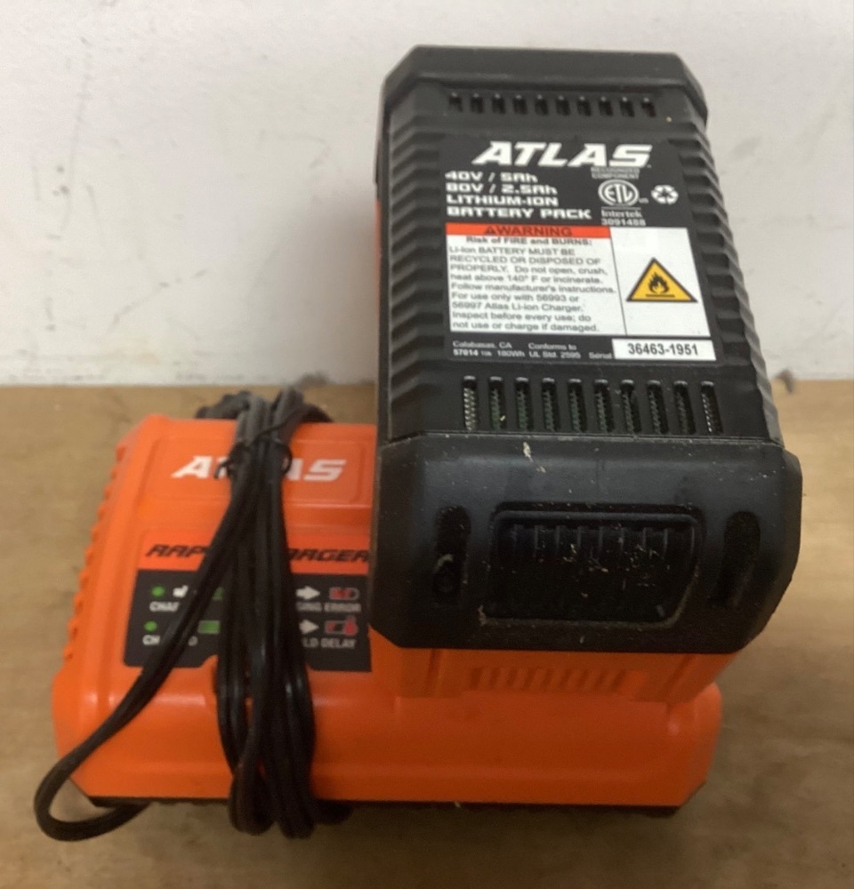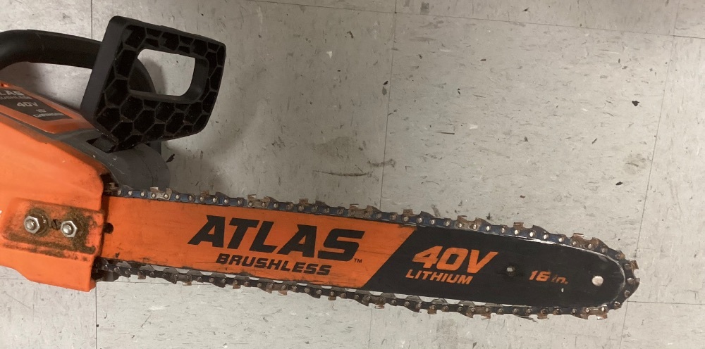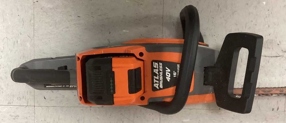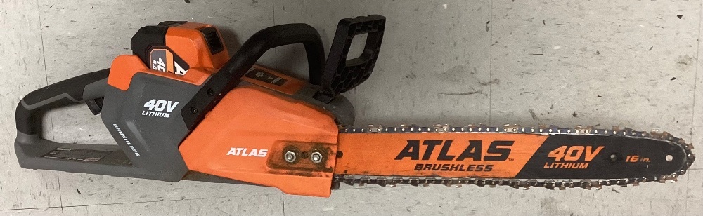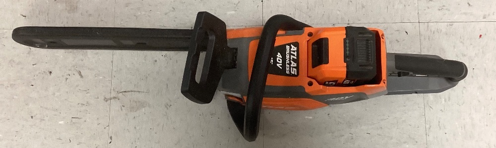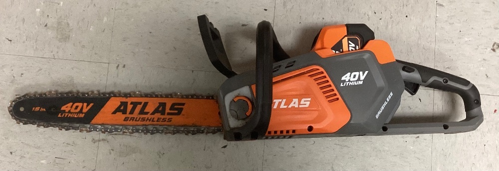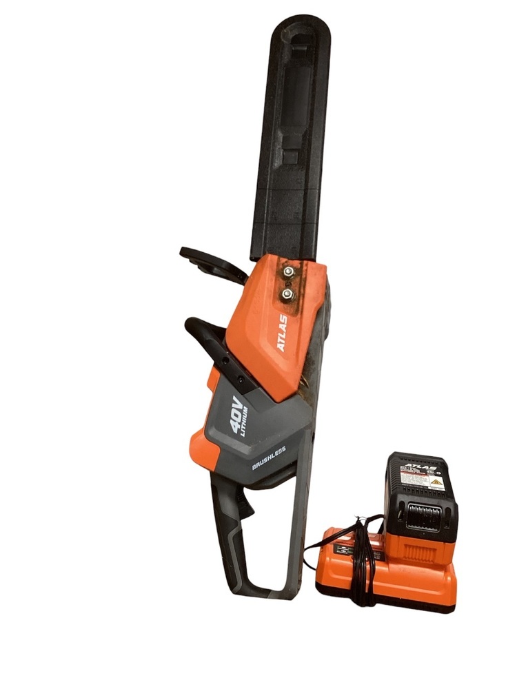 Experience the raw power and quiet performance of the Atlas 56938 Chainsaw! This 40V battery-operated beast lets you roam free with lightning-fast recharging. It's not just a chainsaw; it's your next adventure wrapped in a safety-focused design. Includes battery and charger. Unleash your lawn's potential!