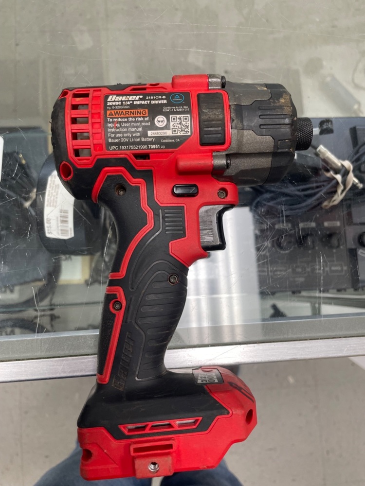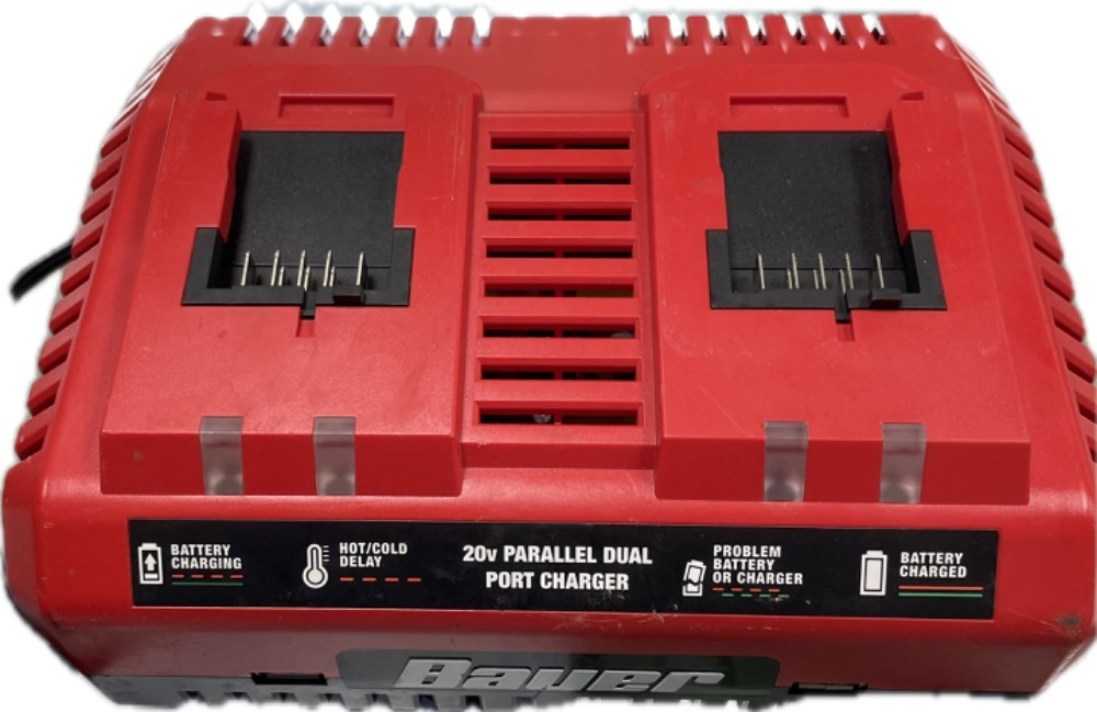Tools Tool Set Bauer A/2181CR-B B/2161CR-B C/2241C-B D/1702C-B E/2108C-B ID: 320260 BAUER 1/4" IMPACT DRIVER, ANGLE GRINDER, ROTARY HAMMER, 20 V BATTERY, DUAL PORT CHARGER