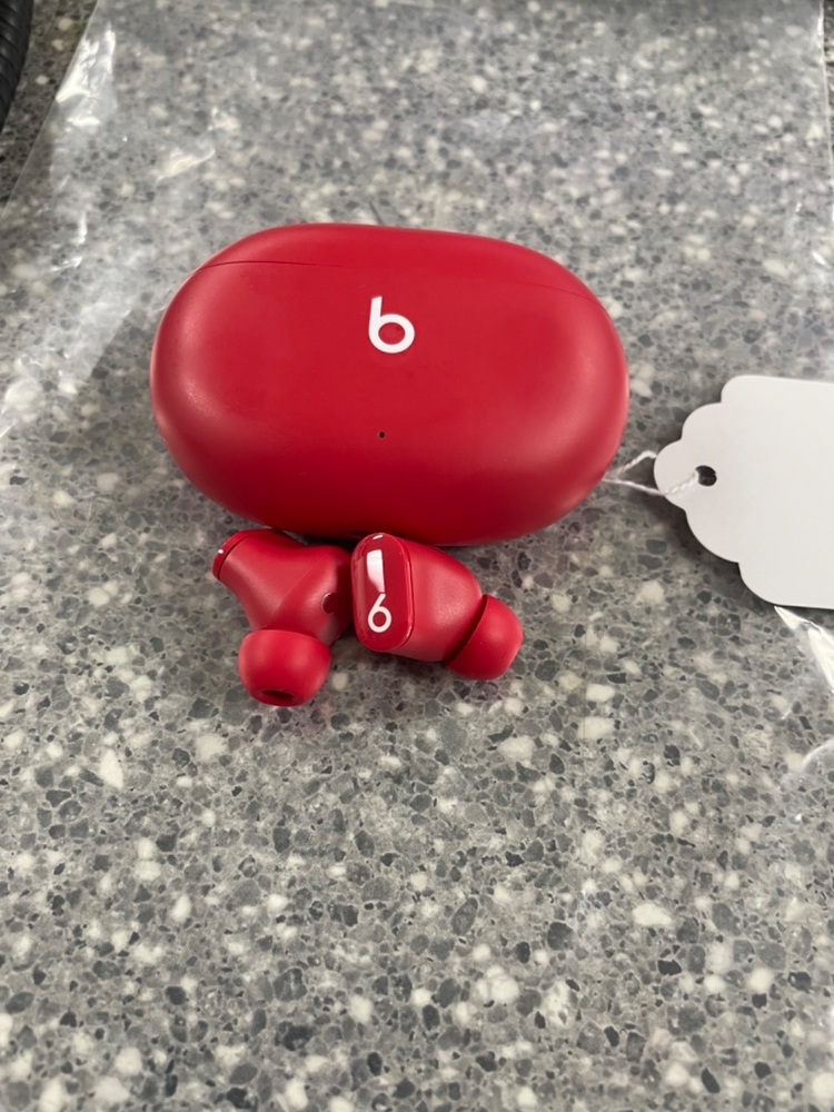 Electronics Headphones BEATS with SN: HNYMV4QE0RP4. Features stylish red coloured Studio Buds, stored in a matching red case. Ensures high-quality audio output, perfect for music and podcast lovers.