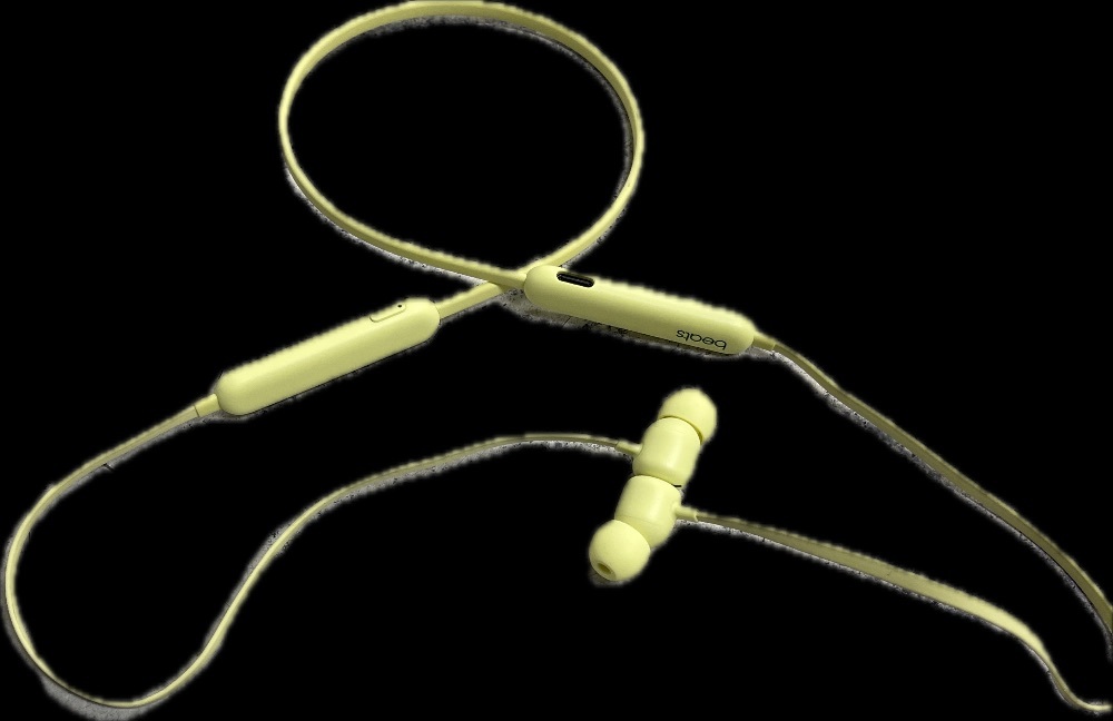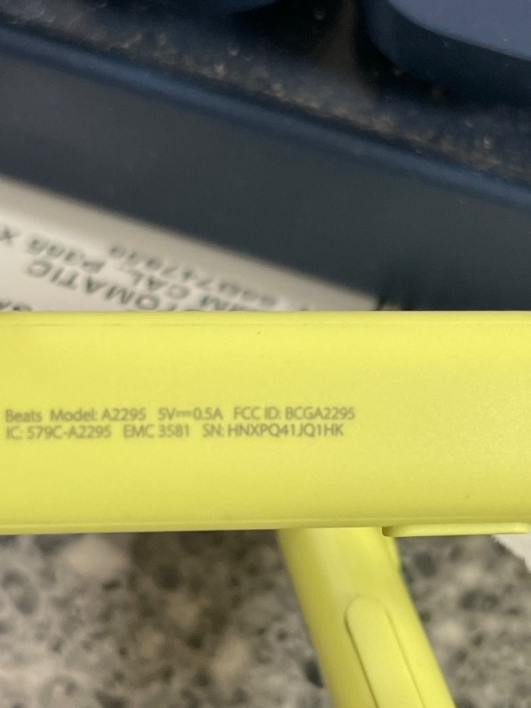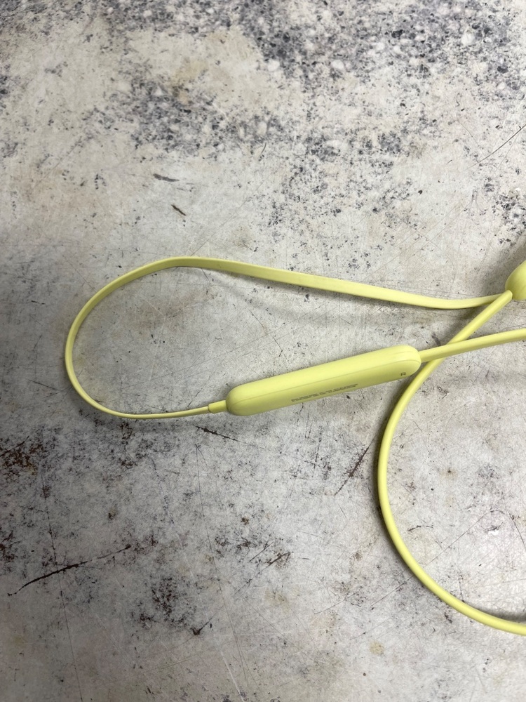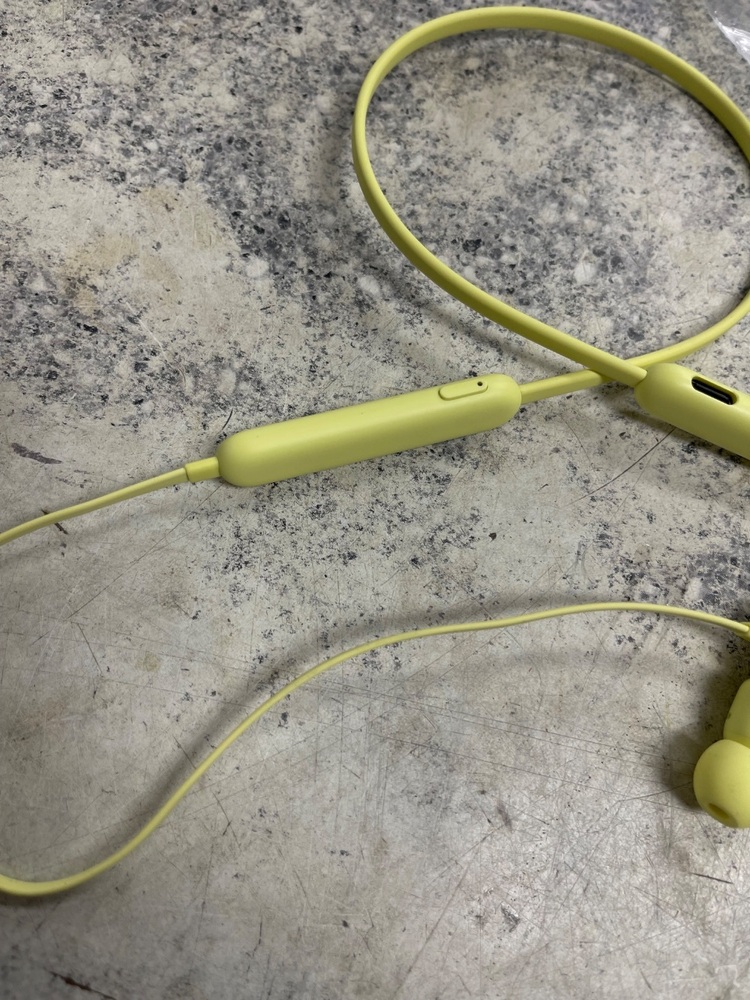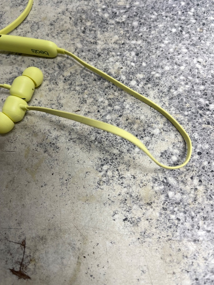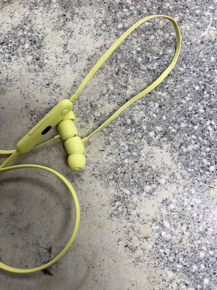 The Beats A2295 are yellow flex earbuds, perfect for on-the-go listening. They offer high-quality audio with effective noise isolation. Their comfortable fit and compact design make them ideal for extended use. The Serial Number is HNXPQ41JQ1HK.