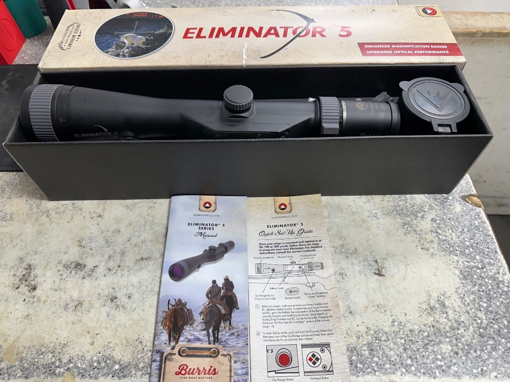 The Burris Eliminator 5 is a top-tier laser-rangefinding riflescope that blends optics and ballistics tech for maximum convenience. It features a 5–20× magnification with a 50 mm objective, crystal-clear multi-coated glass, and an illuminated X96 reticle. With a built-in laser rangefinder, it instantly measures target distance (up to ~2,000 yards) and — using a programmable “smart dope card” — calculates and displays the correct bullet drop and wind-holdover settings automatically. A digital inclinometer handles angled shots, while a wireless Bluetooth remote and direct-mount design make it quick to deploy. Weighing 28.8 oz and built for rugged use, the Eliminator 5 delivers optics, ranging, and ballistic adjustment all in one. (B&H Photo Video)