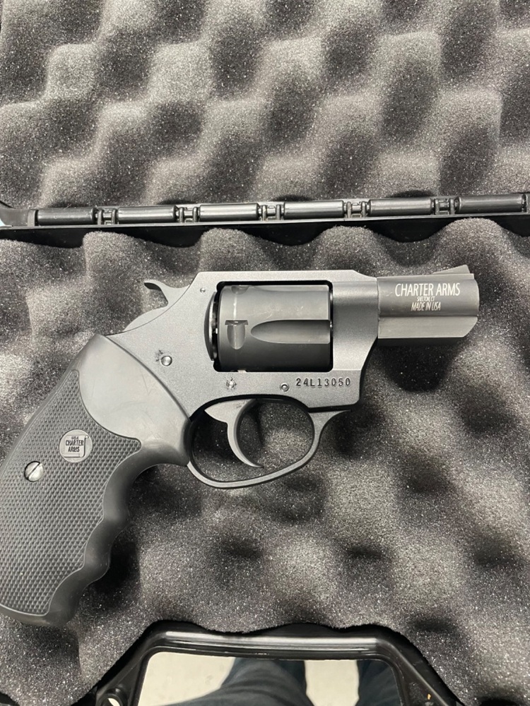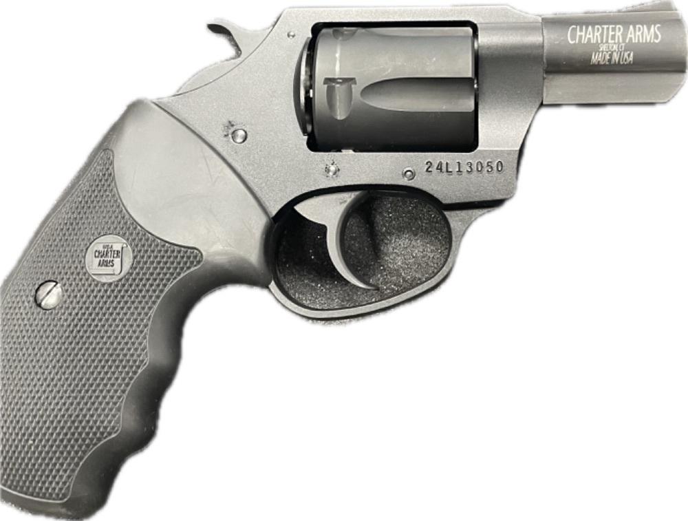 Behold the vintage masterpiece, Charter Arms Revolver, a .38 Special Cal Undercover sn# 24L13050. Sporting a mysterious blued silhouette and time-resistant, black rubber grips, this five-round beauty whispers tales of unseen antics and secret missions. She's not just a firearm, she's a stylish relic of the past.
