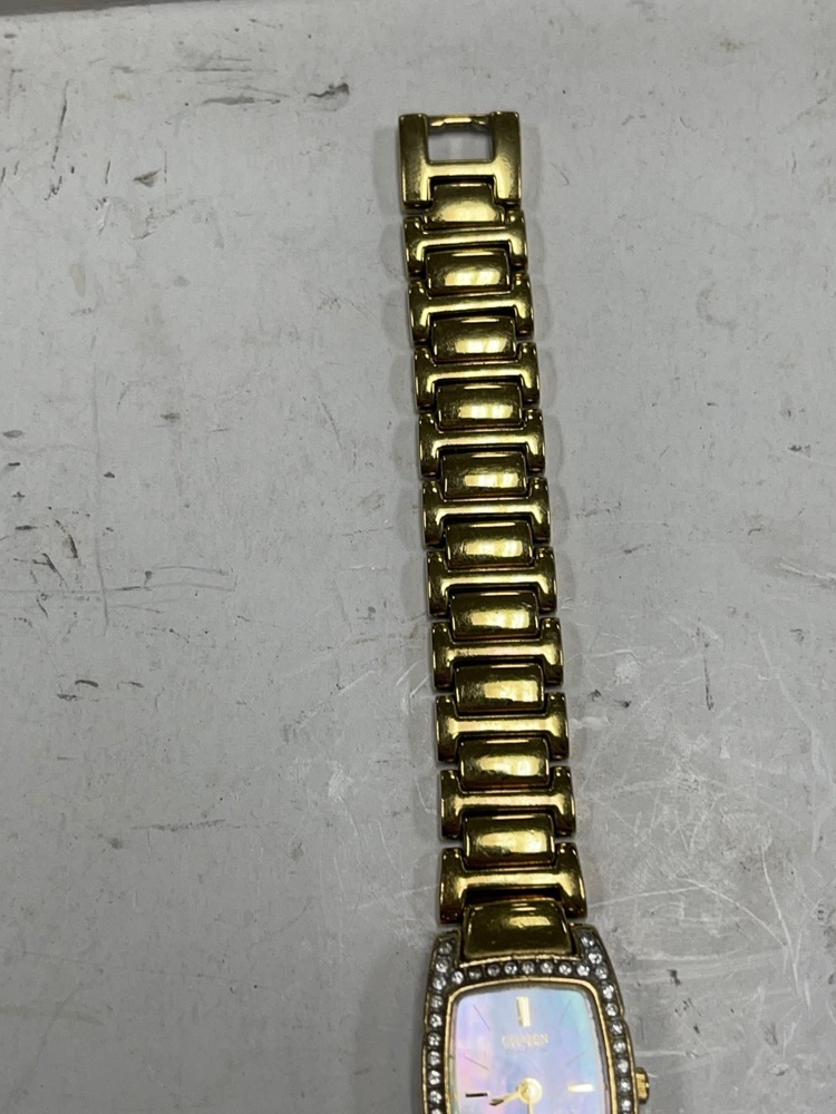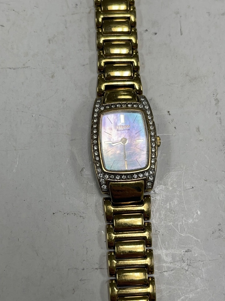 Experience timeless elegance with the Citizen 8023 Women's Watch. Showcasing a dazzling rhinestone bezel and sophisticated Mother of Pearl face, this watch embodies sophistication. Perfect for every occasion, this timeless accessory adds a touch of glamour to any ensemble. Stay punctual and stylish with Citizen