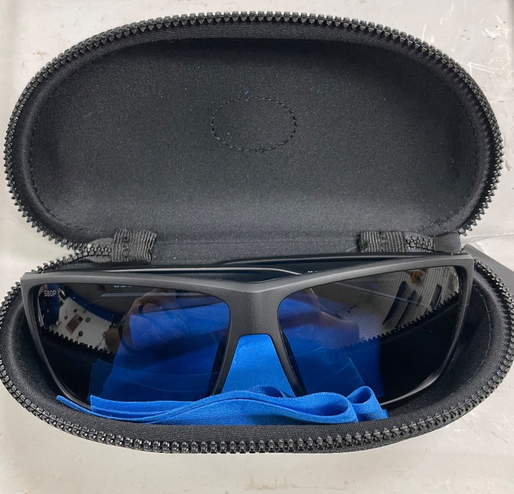 Unveil your dazzling style with these chic Costa Rincon 580P sunglasses! Outfitted with striking blue lenses and sleek black frames. Elegant in a box, they offer impeccable vision clarity, ready to level up your fashion game high.