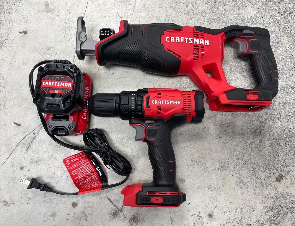 CRAFTSMAN Tools Combo Kit includes a 1/2" Drill/Driver CMCD700 and a Reciprorating Saw CMCS300, ideal for precision drilling and high-speed sawing. Powered by a single 20V Lithium-ion battery, the kit offers cordless operation for optimal mobility. Rapid recharging is facilitated with an included charger.