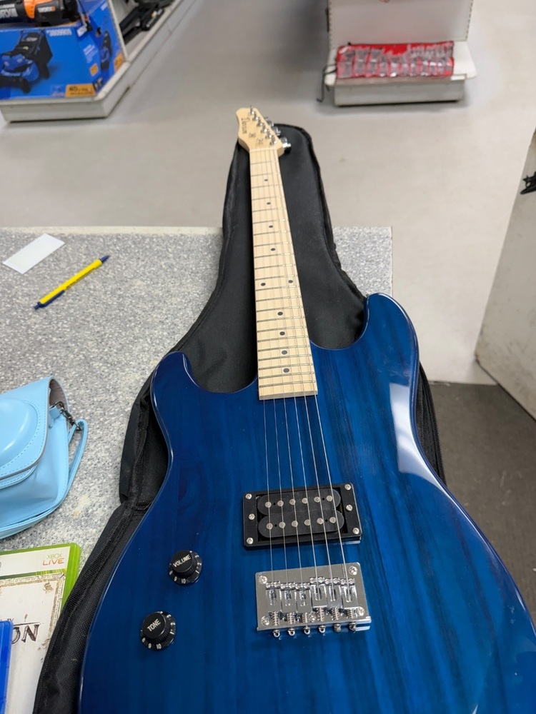 Music Gear Guitars DAVISON BLUE ELECTRIC ID: 321680 LEFT-HANDED BLUE ELECTRIC GUITAR IN CASE.