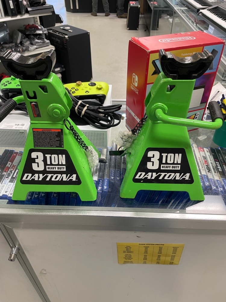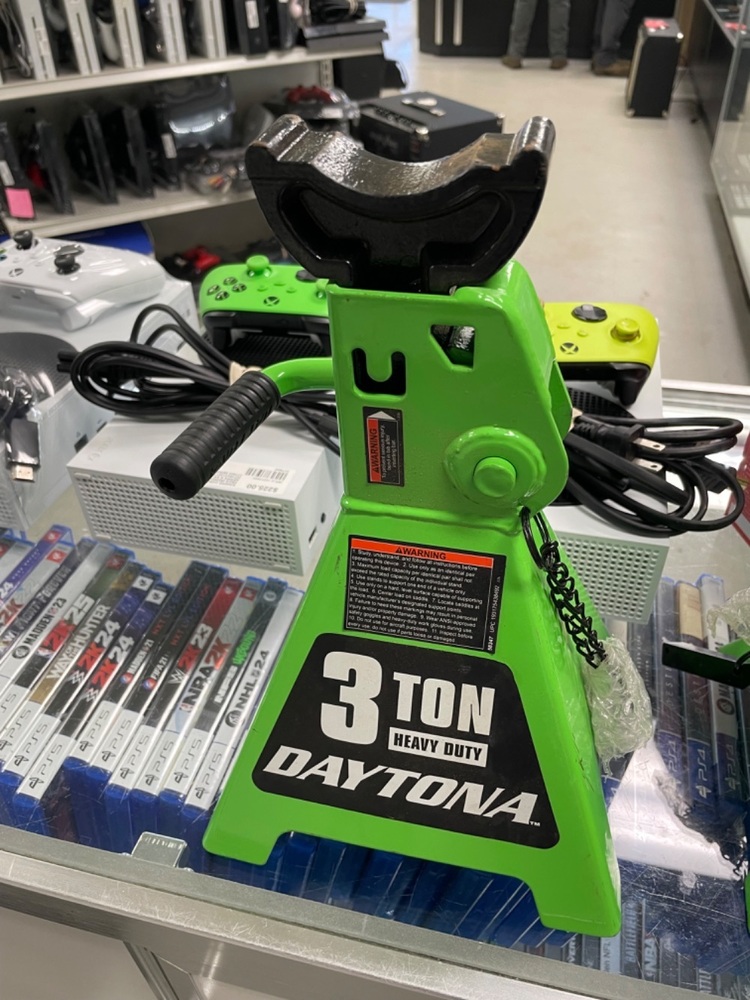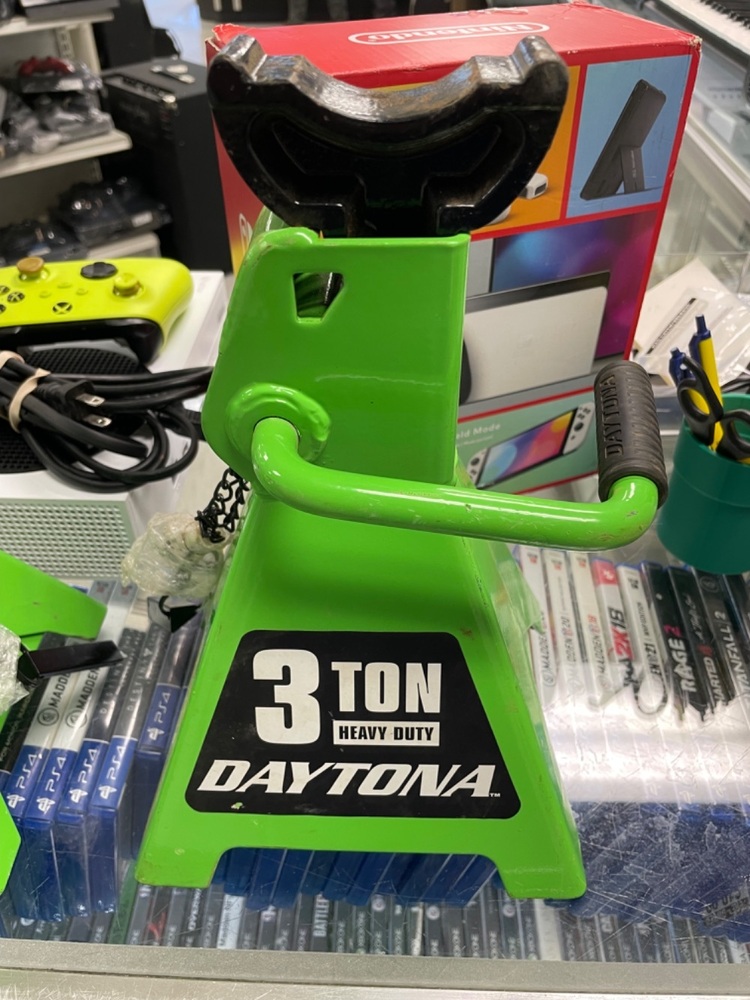 Check out this Daytona 58347. Neon green and brighter than your grandma's Sunday best. Can lift 3 tons like it's lifting chocolates. ID: 319903, making all other Jack Stands green with envy! Can I get a SN: 193175438492? That's right, we're not joking.