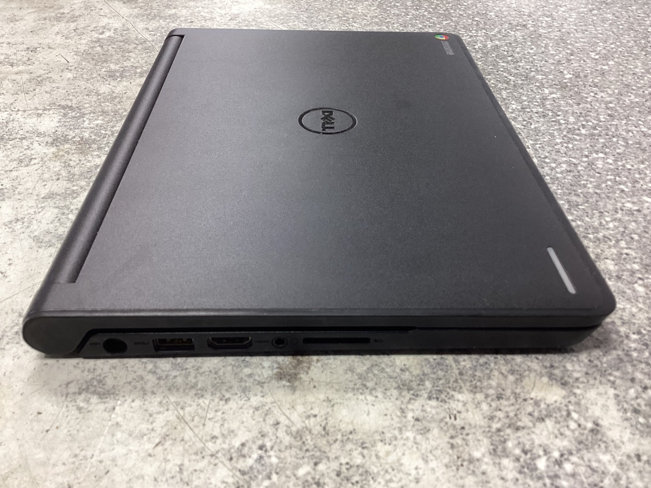Explore technological sophistication and chic simplicity with the Dell Chromebook 11. Wrapped in a sleek grey finish, this laptop promises optimal performance with its elegant design, lightning speed and long-lasting battery. The cherry on top is the included charger for continuous productivity. A phenomenal fusion of style and technology, your ideal companion for work or leisure.