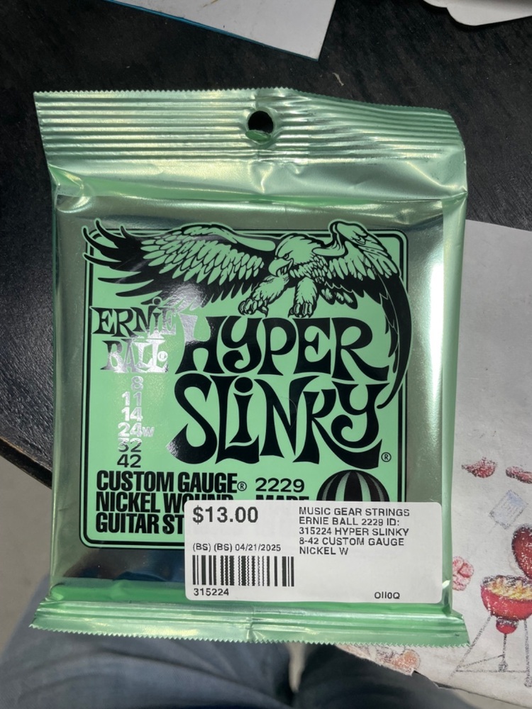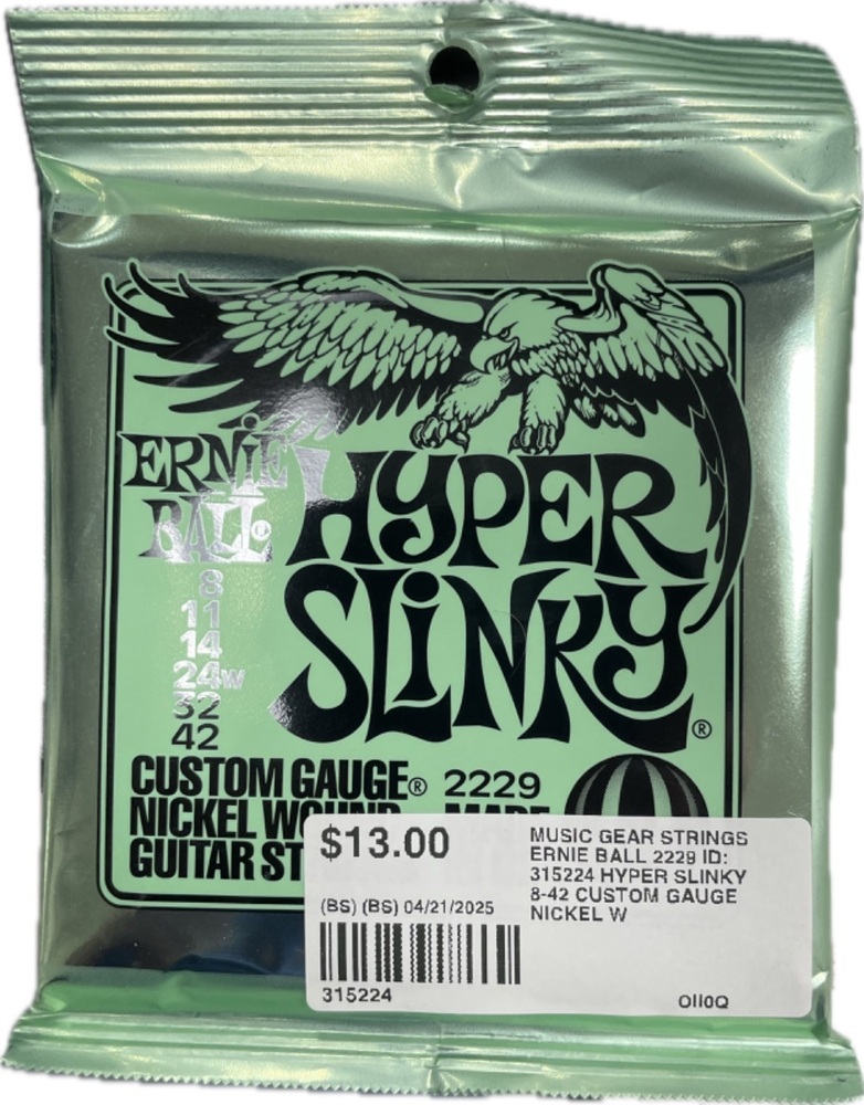 Music Gear Strings ERNIE BALL 2229 ID: 315224 HYPER SLINKY 8-42 CUSTOM GAUGE NICKEL WOUND GUITAR STRINGS