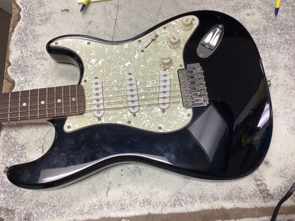Discover the Fender Squier Strat Black Guitar, where remarkable tunes meet aesthetic elegance. Adorned with a pear pick, it blends beautifully with its light wood neck lending an old-school vibe. Unleash your inner rockstar with this exquisite instrument, built to create memorable chords and dazzling melodies. Strum your way to musical heaven!