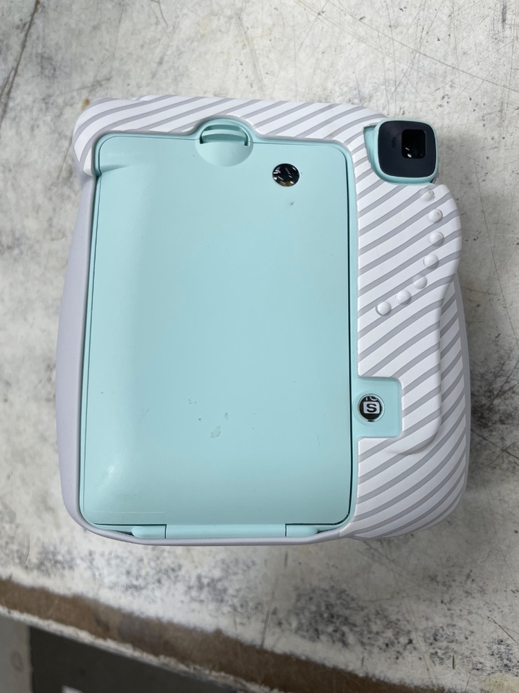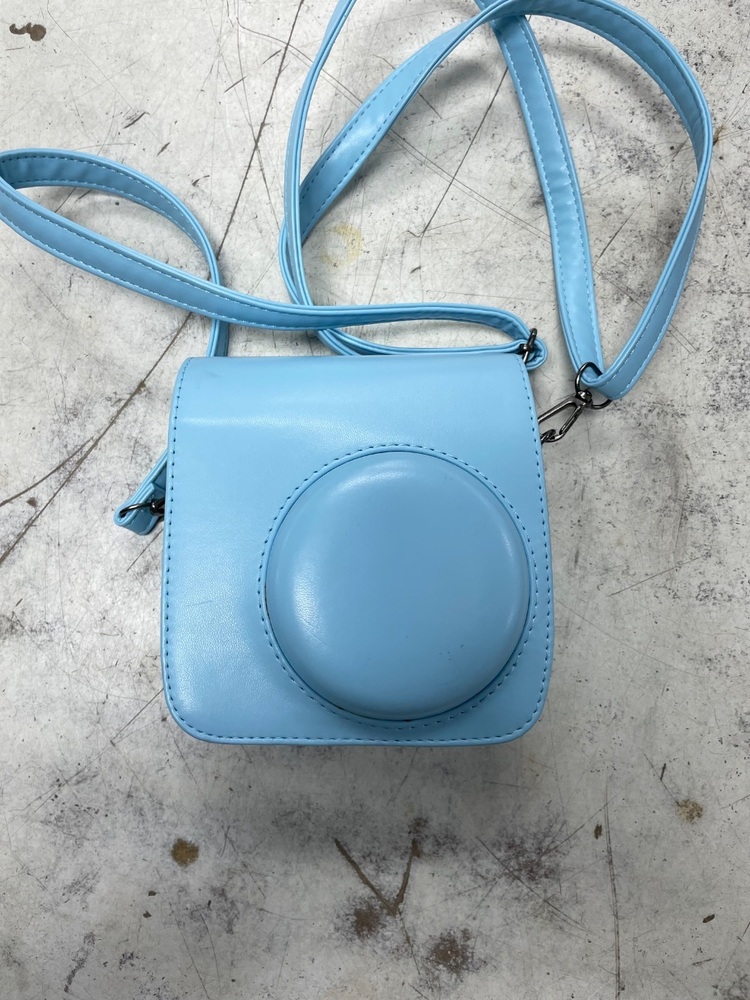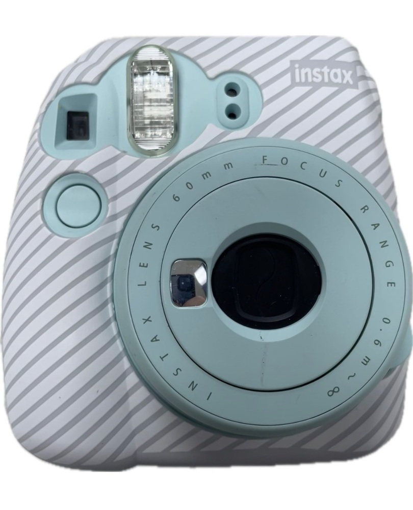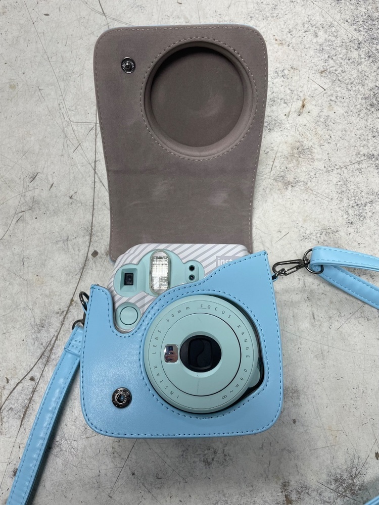 Capture your treasured moments with the FujiFilm Instax Mini Camera in light blue. Encased in a chic, protective case, it's your perfect photo partner. Get instantly tangible snaps, with a refreshing splash of color.