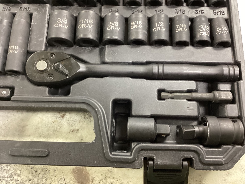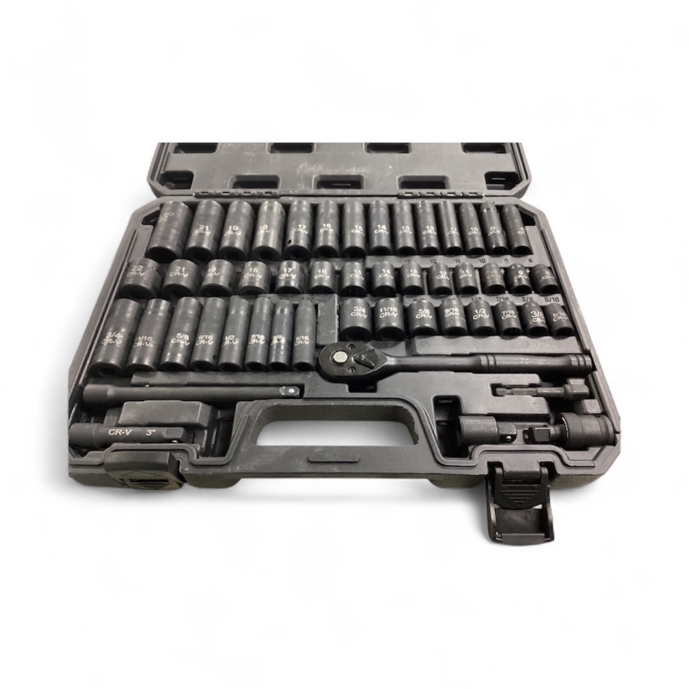 Introducing the GENERIC 50 PC Tool Set! Housed in a solid black hardened casing, this tool set is your one-stop-shop for dependable, wearable, and hard-wearing equipment. The all-black ensemble exudes an aura of power, top-notch performance, and elegant sturdiness. Every handyperson's dream!