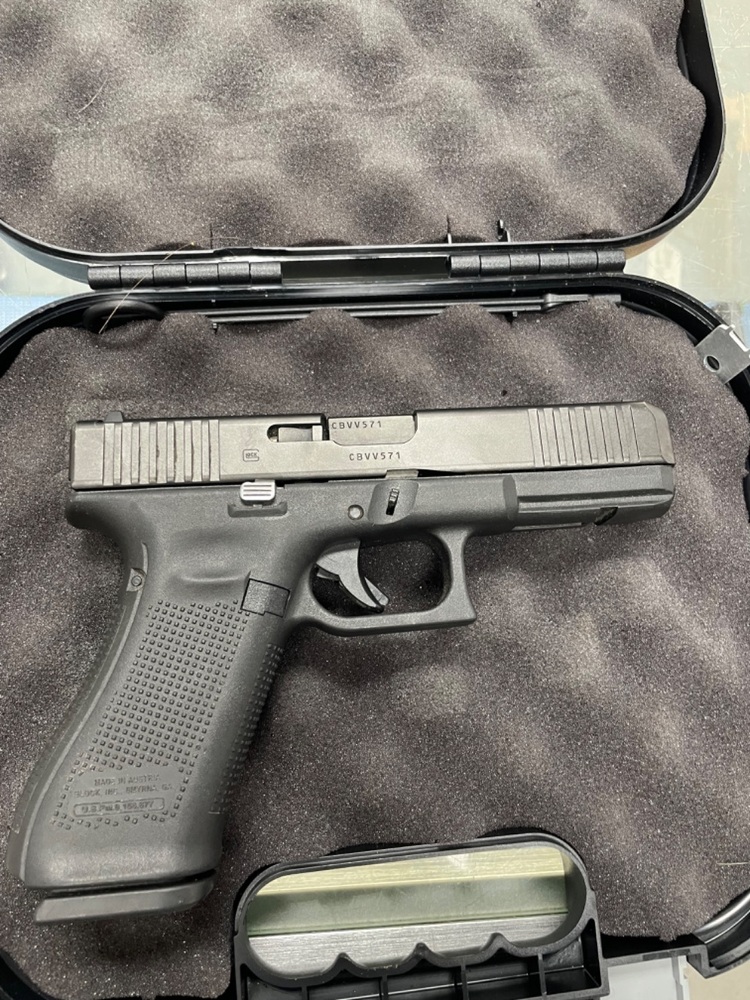 Behold, the majestic Glock G22 from Austria, a sleek black pistol with trusty .40 cal semi-auto features. Possessing a mysterious SN:CBVV571, it creates an allure that's hard to resist. Accompanied by a box, this black framed beauty with an exquisite black slide is a true power statement.