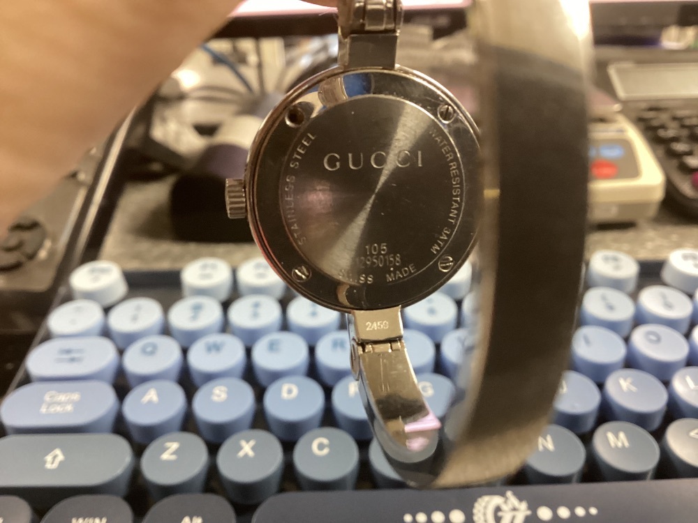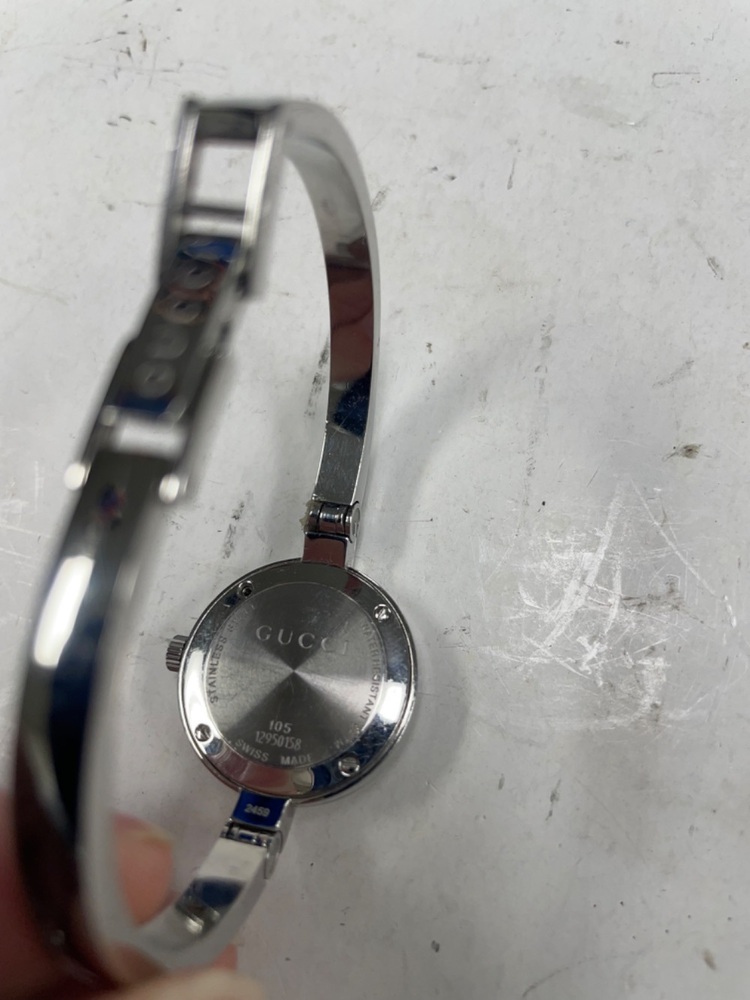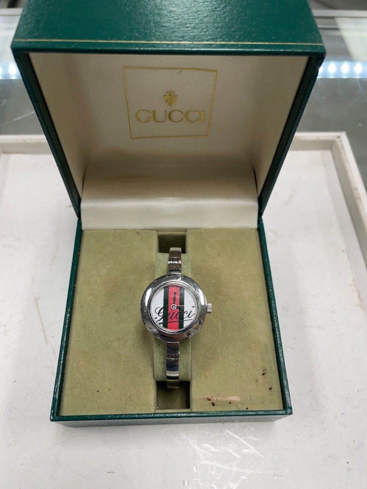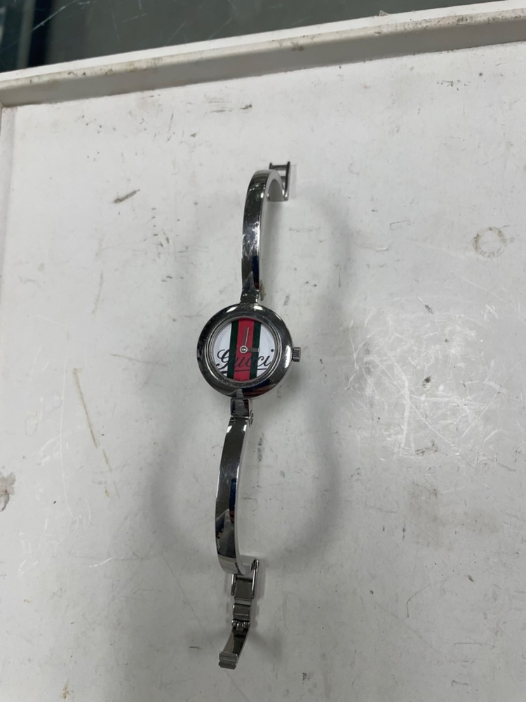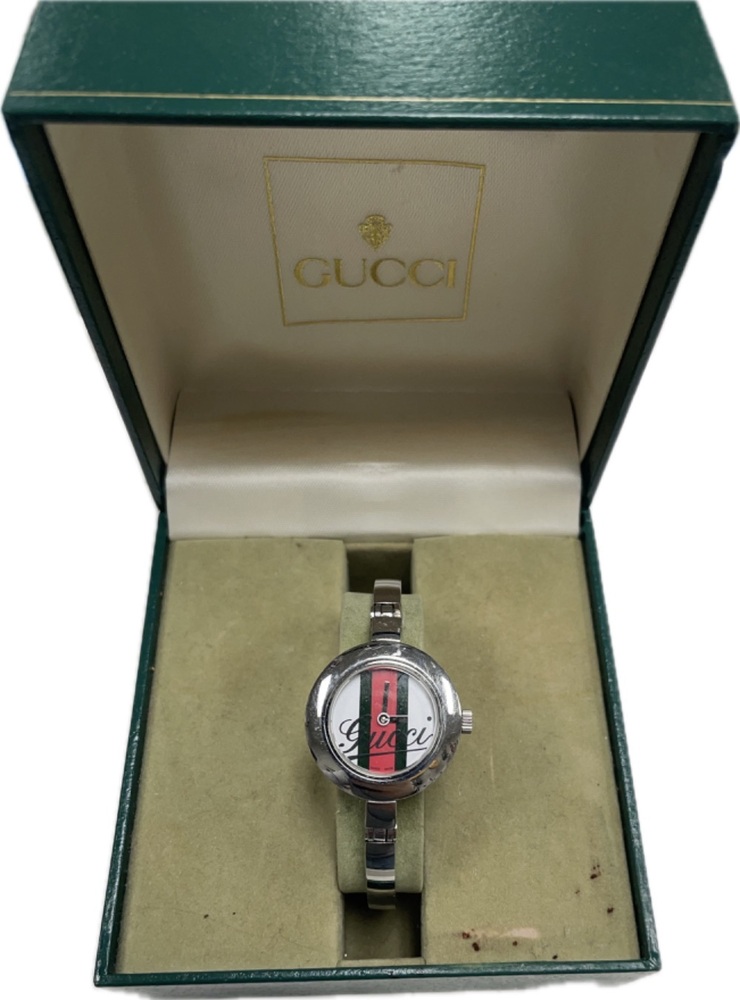 Watches Wrist Watch GUCCI 105 ID: 319252 SILVER WRIST WATCH WITH WHITE GREEN AND RED STRIPED FACE