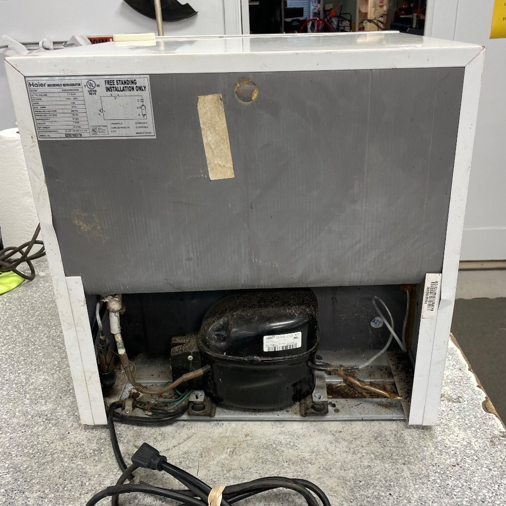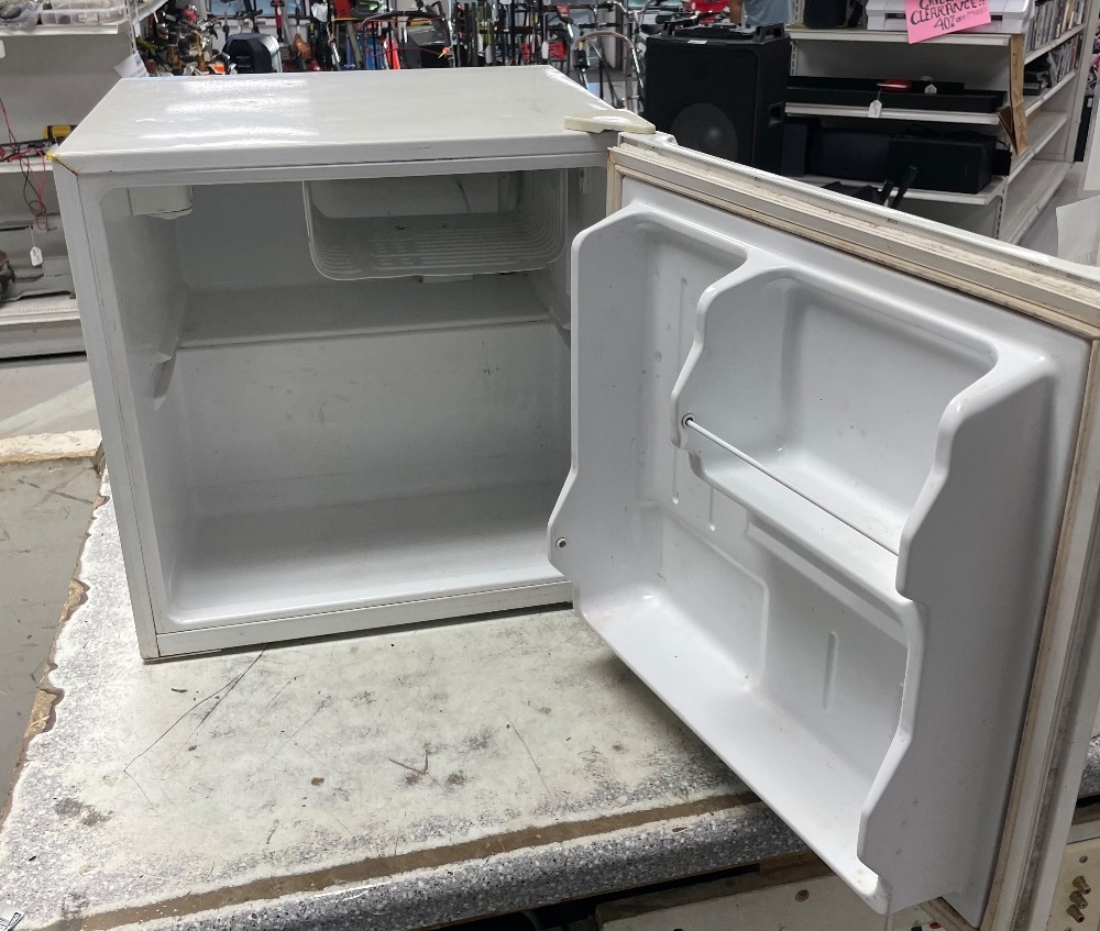 This Haier HSA02WNDWW fridge does more than cooling sodas. It's your tiny, steadfast guardian of leftover pizza, secret chocolate stashes and half-eaten sandwiches. Because every superhero needs his cape, this pint-sized chillinator dons a sparkling white coat. Trust us, your snacks have never been safer!