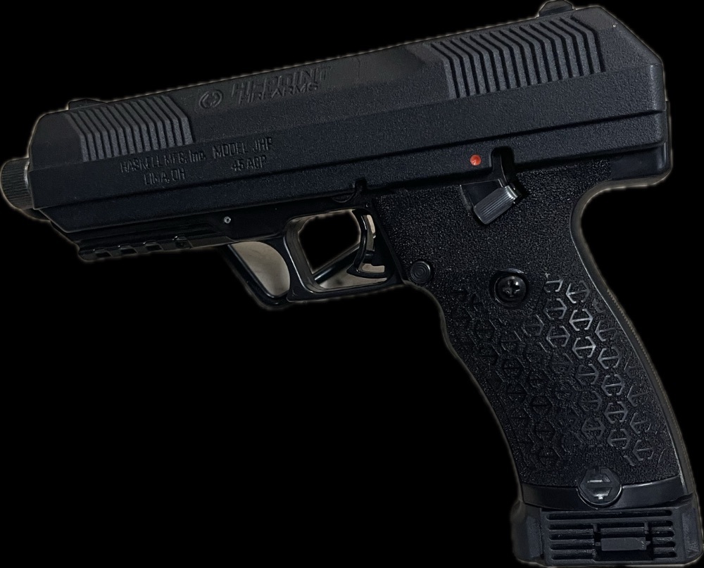 The Hi-Point JHP is a semi-automatic .45 ACP pistol known for its affordability, durability, and simplicity. It features a polymer frame and offers reliable performance suitable for self-defense or recreational shooting