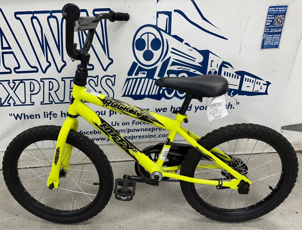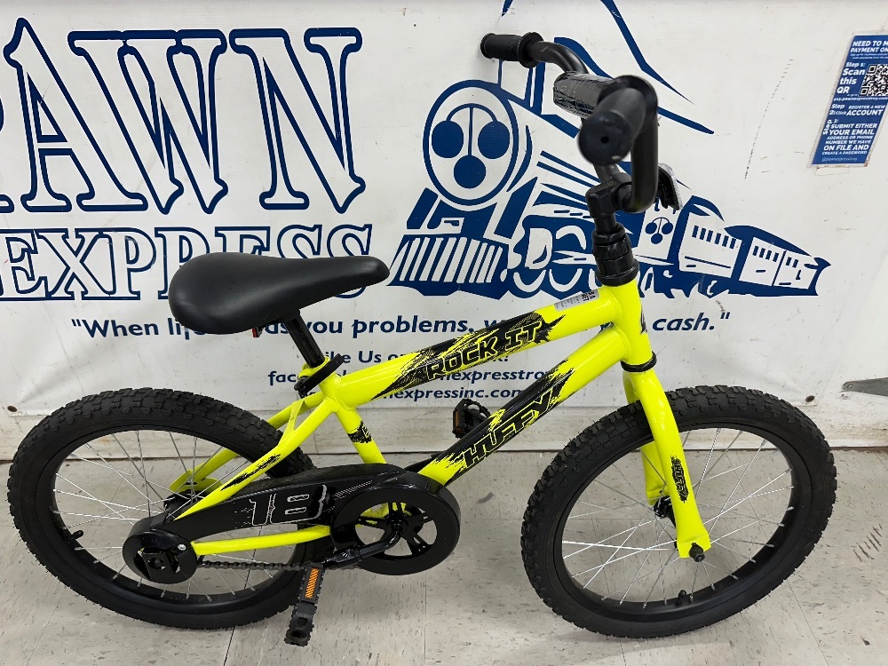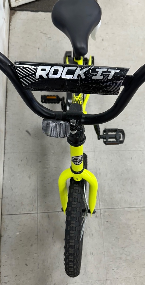 Ride in style with the lime green Huffy 20" Rock It Kids' Bike! Designed for young riders, it features a durable steel frame, easy-to-use coaster brake, and bold graphics that make every ride exciting. The padded seat and handlebar ensure comfort, while the training wheels add stability for beginners. Perfect for neighborhood adventures, this bike combines cool looks with reliable performance—ideal for kids ready to rock the road!