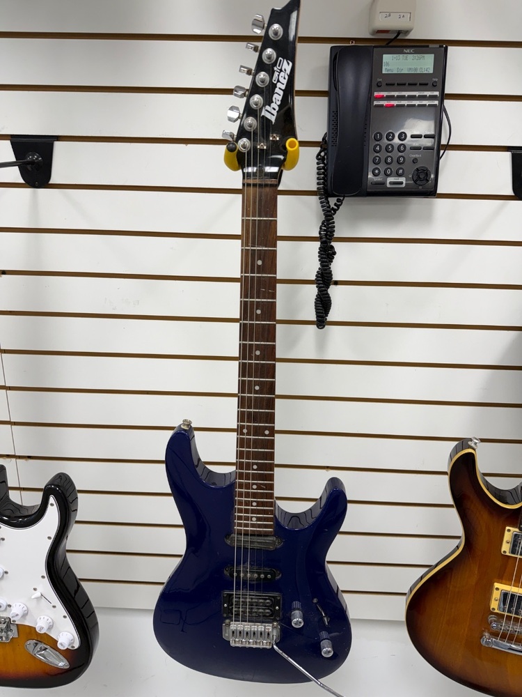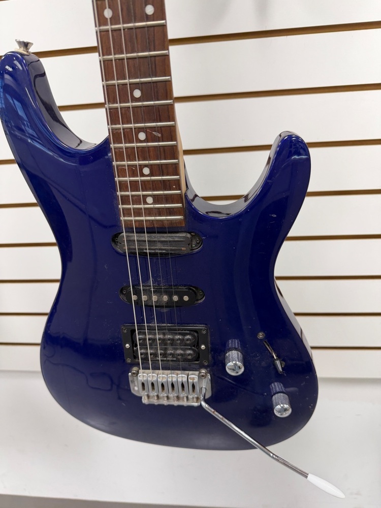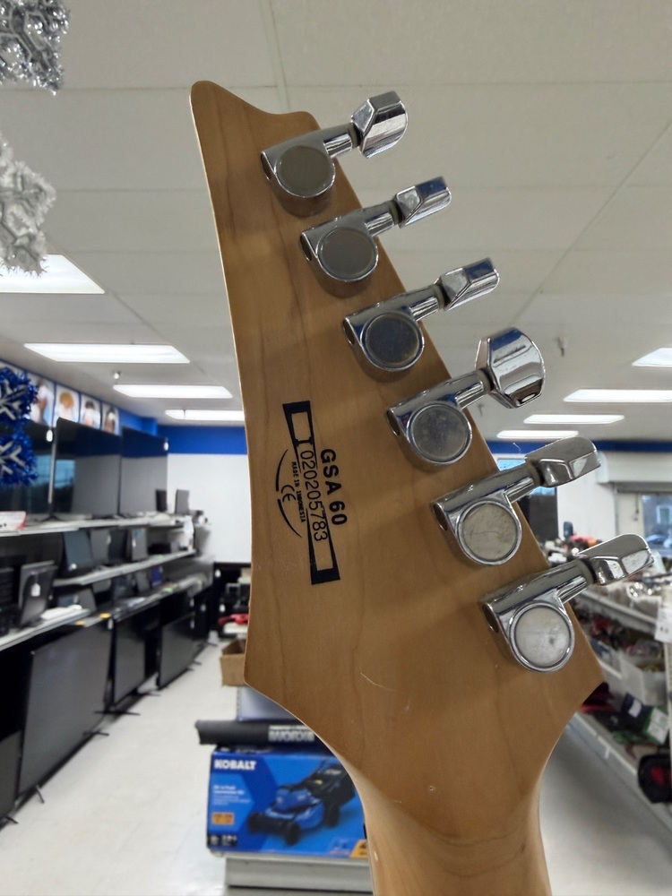 Experience a symphony of sounds with the strikingly handsome Ibanez GSA 60. This dazzling jewel-toned Gio Blue-Purple masterpiece is loaded with Seymour Duncan pickups for pure sonic bliss. Enhanced with a versatile whammy bar, this guitar is a vibrant enthralling symphony in your hands.