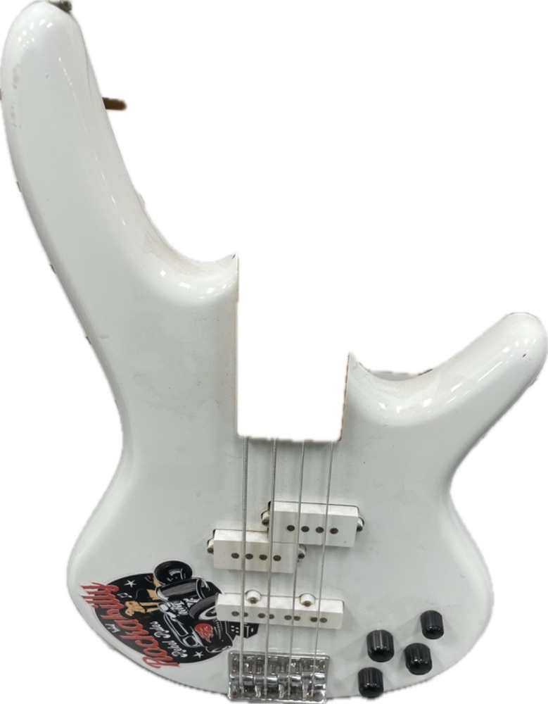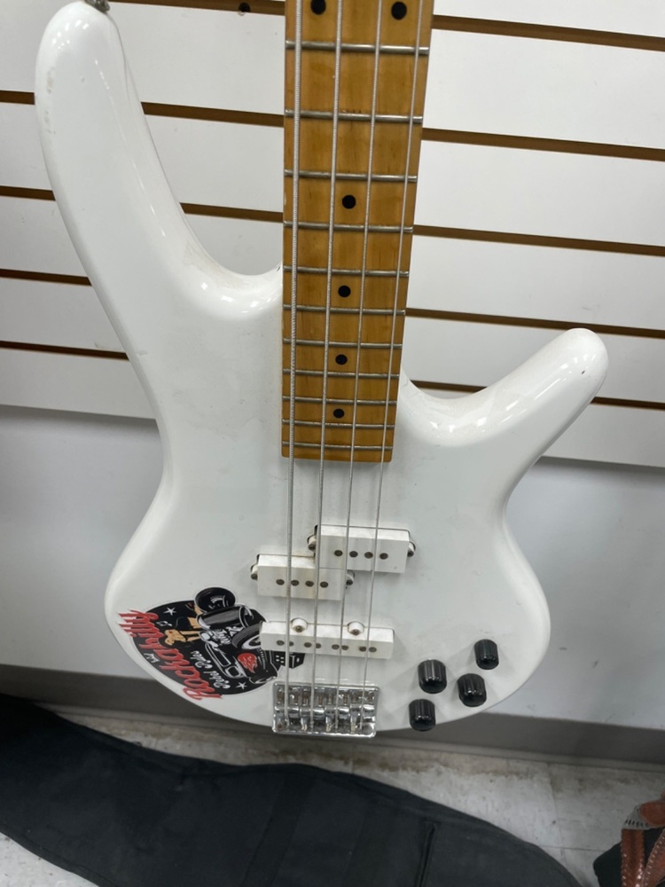 Meet the Ibanez Soundgear GSR250M, SN: I100716001, ID: 319625. It's as white as a snowman with a toothpaste addiction and boasts 4 strings of bass awesomeness! Because who needs 5 when you can Rumble in Style with 4?