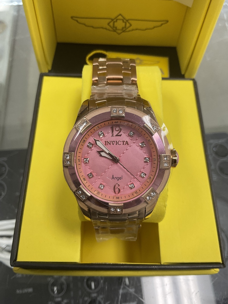 Indulge in timeless elegance with the INVICTA 42104 wrist watch, an exquisite embodiment of luxury. This pink diamond studded beauty, bearing the unique serial number NSN ID: 315648, is garnished with precious diamonds adorning every hour mark except 12,3,6, and 9. An epitome of finesse and sophistication, it's fashion and timekeeping in perfect harmony.