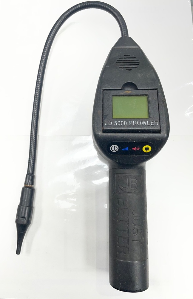 The JB Industries LD-5000 Prowler is a professional-grade, handheld refrigerant detector. It features a black casing, advanced sensor technology for accurate leak detection, and a flexible probe for tight spaces. Automatic calibration ensures reliable performance.