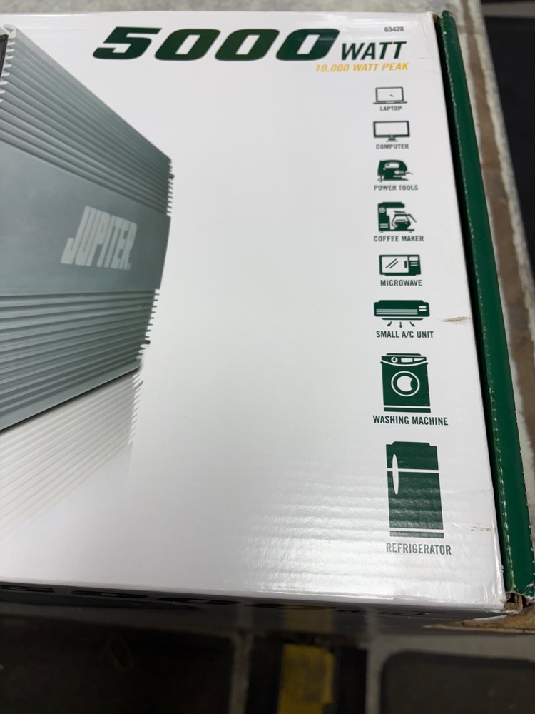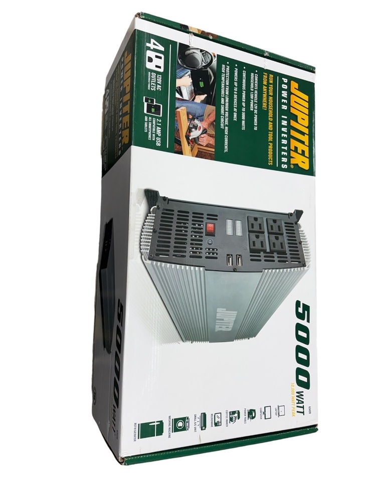 Unleash the power! Jupiter 63428 brings you a magnificent silver 5000-watt Power Inverter, an astounding fusion of mightiness & performance. Still untouched in its original mystery box, it's ready to electrify your life! Grab this power beast before it's gone!