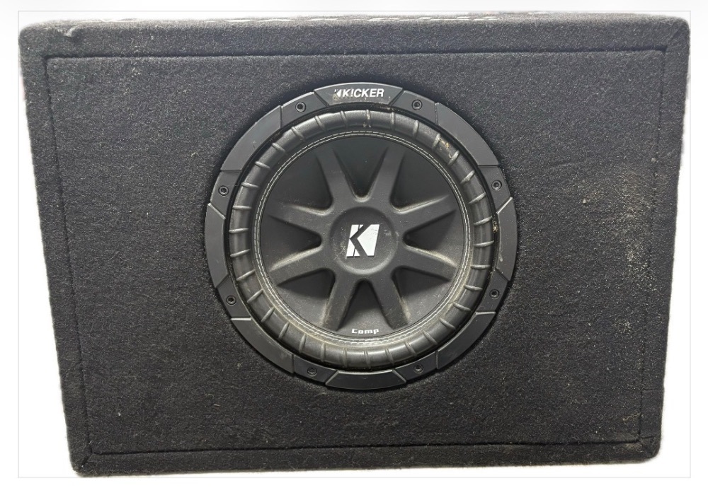 Turn your ride into a concert on wheels with our Kicker 8 subwoofer! Ensconced in an original Kicker carpeted box, it pumps out deep, resounding bass for an immersive music experience. Don't just hear your tunes—feel them. Gap the bridge between good and great with this roaring beast of sound!