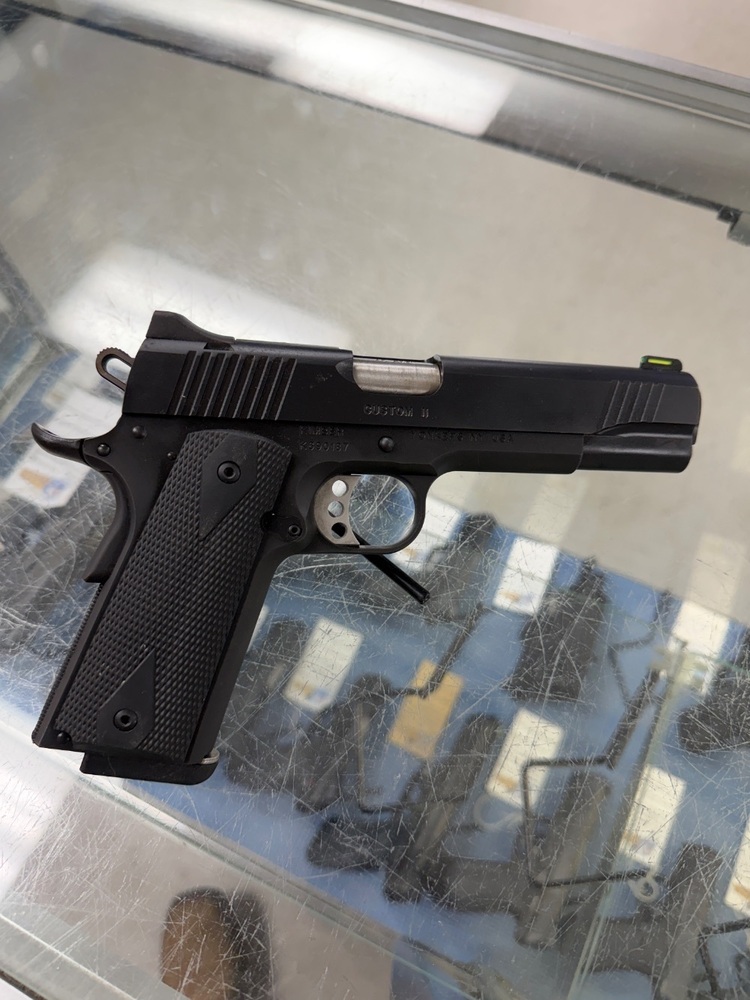 Log#22429: Kimber CUSTOM II Semi-Auto Pistol, .45 ACP caliber. Sleek black-on-black design with matching black grips. Crafted for precision and power, this beauty houses an 8-round magazine. A stealthy classic ready to impress and perform. Serial No: K690187.