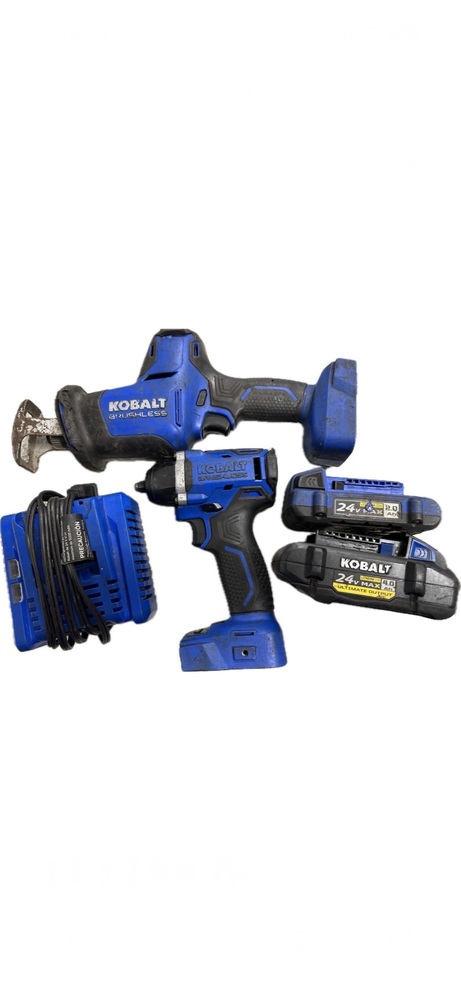 This Kobalt cordless combo kit includes a Kobalt Reciprocating Saw (KRS124B-03) and a Kobalt 3/8" Impact Wrench (KIW3824B-03), along with two Kobalt batteries and a Kobalt charger. Built for power and durability, these tools are ideal for automotive work, construction, demolition, and general DIY projects. The reciprocating saw delivers fast, aggressive cutting, while the 3/8" impact wrench provides strong torque for removing and tightening bolts with ease. The batteries offer reliable runtime, and the charger keeps your tools ready for the next job.