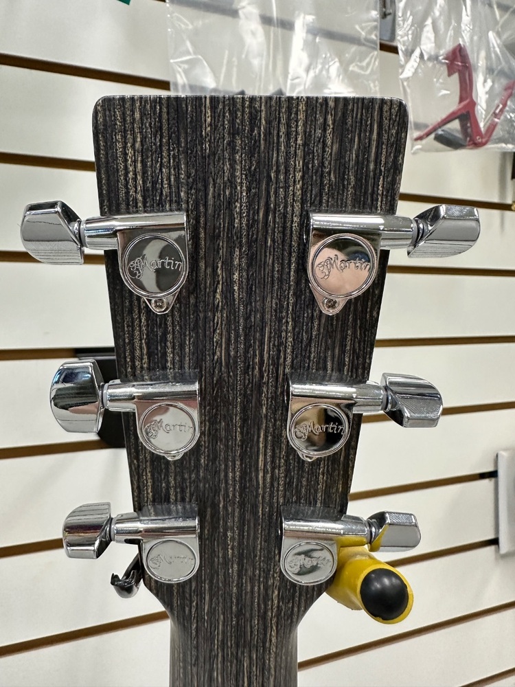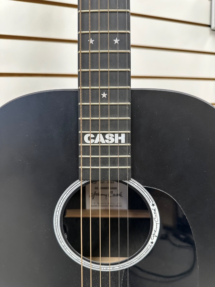 The Martin DX Johnny Cash Acoustic/Electric Guitar is a bold tribute to the Man in Black, blending iconic style with trusted Martin performance. Finished in sleek black, this 6-string dreadnought features a striking black marble-pattern neck that sets it apart visually and feels smooth and comfortable in hand. The solid-feeling body delivers a powerful, balanced tone with strong lows and crisp highs, perfect for strumming or fingerstyle playing. Equipped with Martin MX electronics, it offers clear, natural amplified sound for stage or studio use, with easy plug-and-play reliability. Durable construction makes it ideal for touring musicians and everyday players alike. With its distinctive look, rich sound, and legendary inspiration, the DX Johnny Cash model is both a performance-ready instrument and a standout collector’s piece.