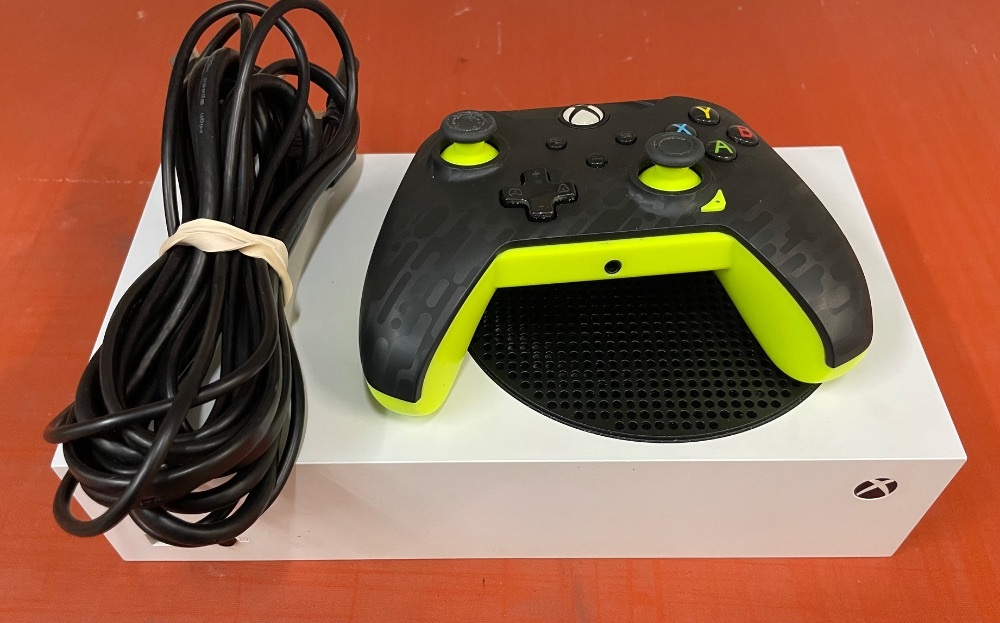 Unleash your gaming prowess with the MICROSOFT XBOX SERIES S WHITE console. A beacon of sleek design and powerful technology, it comes bundled with a striking green and black wireless controller. Journey to immersive digital worlds, limited only by your imagination.