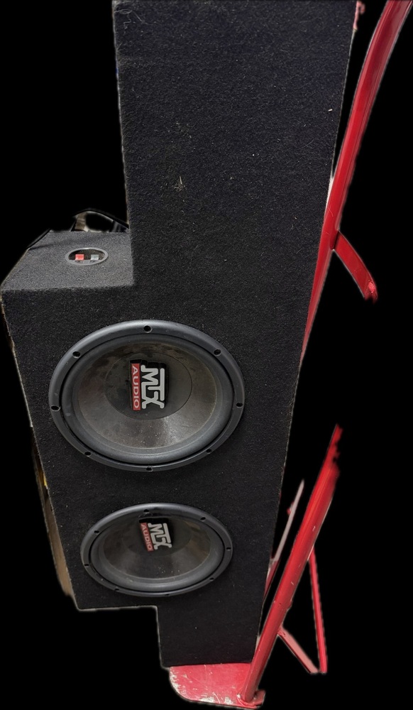 Unleash the beast with MTX Audio 2x10 car subwoofers! Serial number nvsn, ID: 320602, these subs housed in a custom box are primed to pound out robust bass. Experience staggering sound quality with MTX Audio that bamboozles the silence in your drive. Break the sound limit!