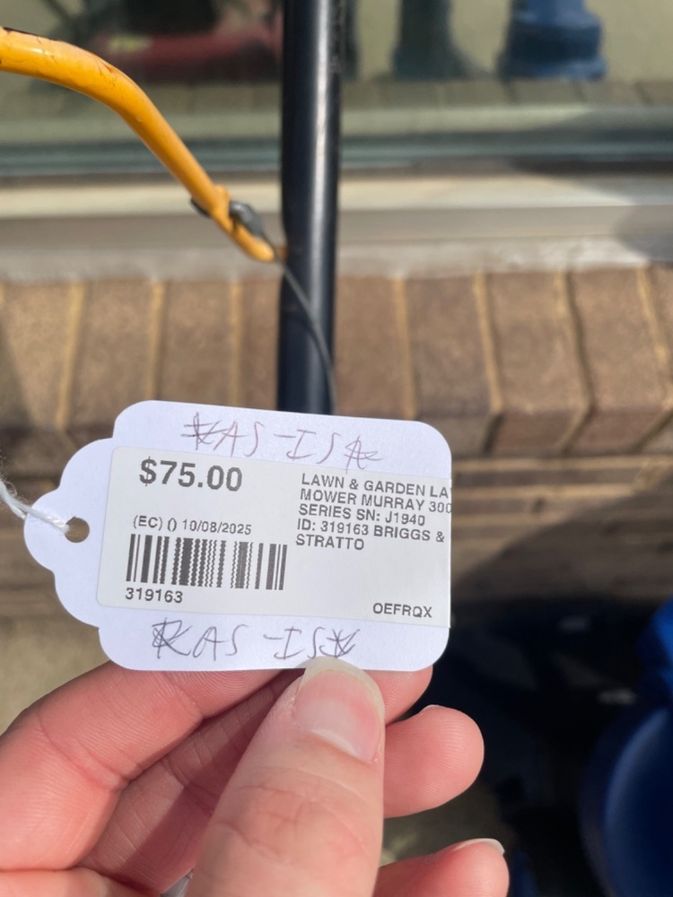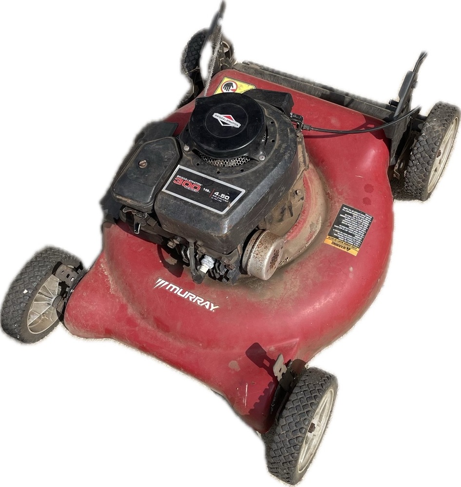 Introducing the vibrant red and black Murray 300 Series Lawn Mower. Powered by the reliable Briggs & Stratton engine, it's one memorable machine. However, like a wild garden rose, it carries its own quirks, sold as-is. Serial Number: J1940, ID: 319163. Embrace adventure in mowing, embark on the Murray journey!