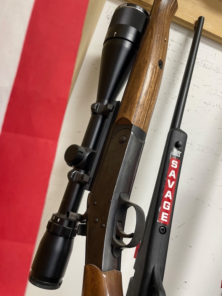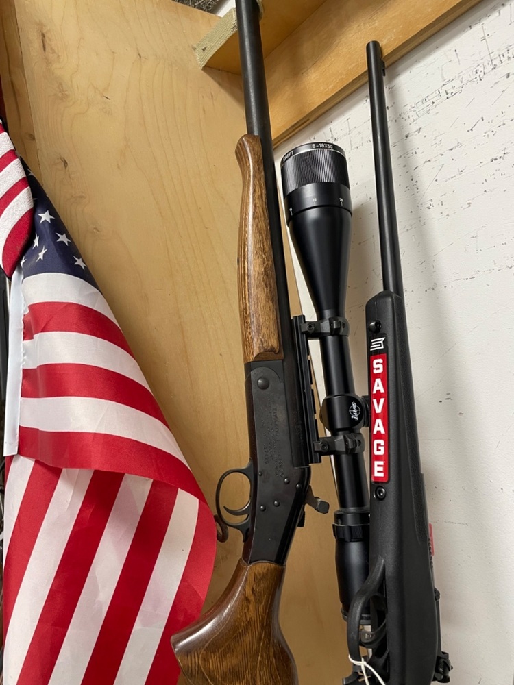 Log#22169 New England Firearms Rifle Break-Action .243 WIN Cal. HANDI RIFLE WOOD STOCK WITH SWIFT SCOPE. SCUFF TOWARD END OF BARREL