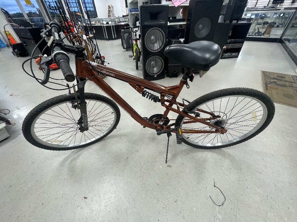 Ride like the wind and terrify local wildlife with the Ozone 500 Exhilarate 27.5-inch Mountain Bike! Conquer mountains or small molehills – with such grandeur, even your mailbox trip becomes an epic journey!
