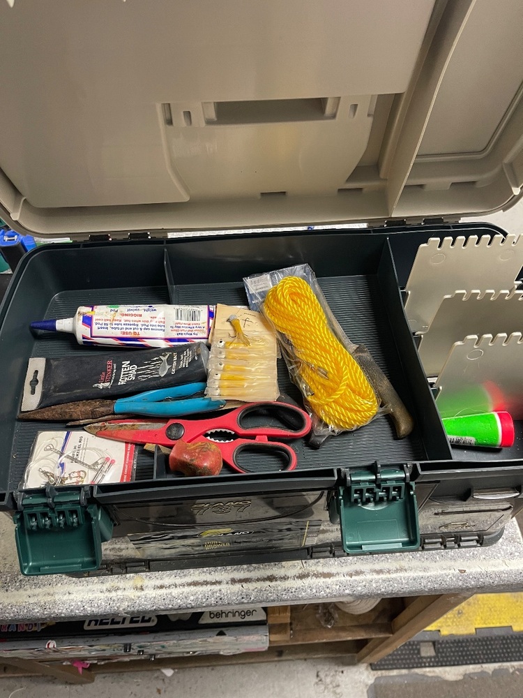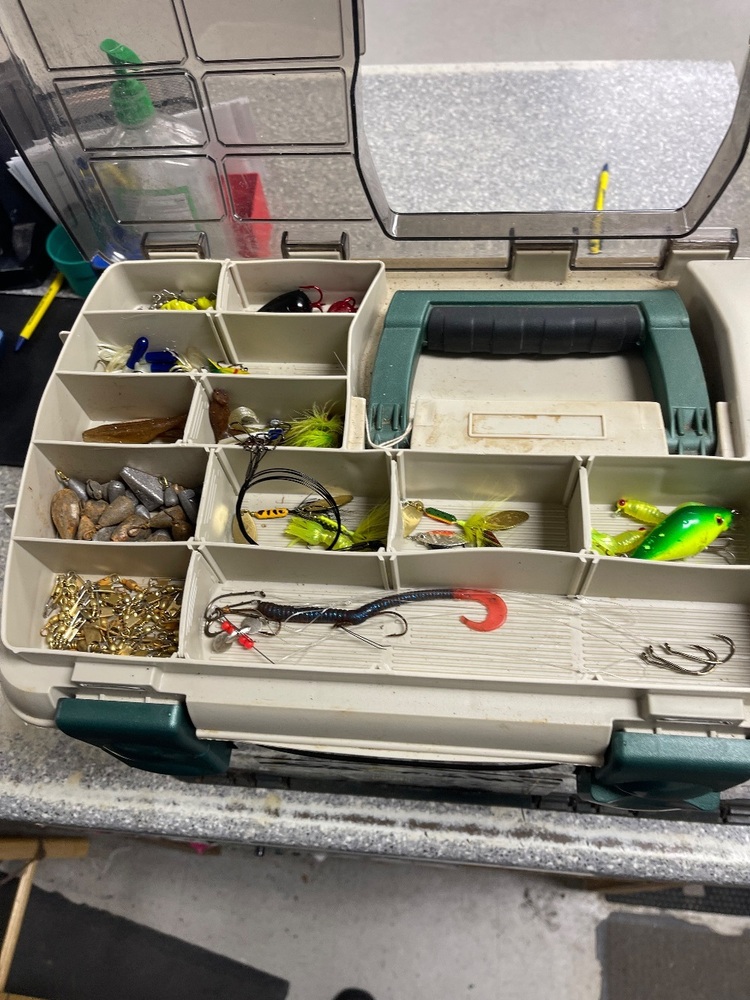 This Plano 737 tackle box is loaded with various fishing supplies. It features multiple compartments for organized storage, offering everything an angler needs. From hooks to line spools, sinkers, lures, and more. Experience the convenience of keeping all your fishing gear in one portable and secure box