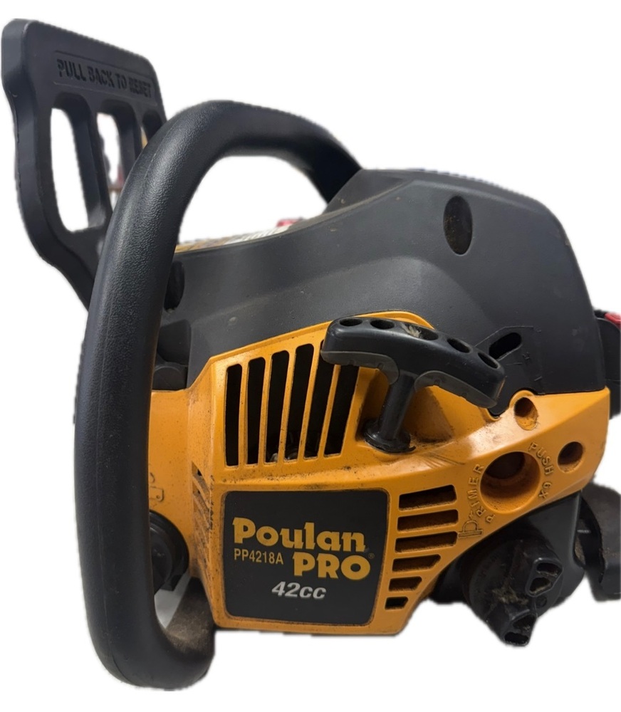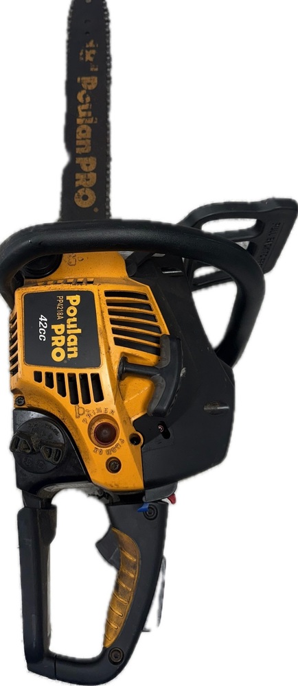 Introducing the Poulan Pro Chainsaw: a blend of power and grace in stunning black and yellow. Its 42cc engine roars to life, ready to tackle any task with its razor sharp 18 blade. Effortlessly cut through gnarled oaks and towering pines, shaping your garden into your own personal sanctuary. A game changer for the DIY landscaper, this sturdy, reliable tool offers you control and precision. Rediscover your lawn differently with the unabashed power of the Poulan Pro Chainsaw. Embrace your wild side.