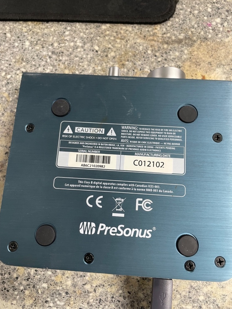 Embrace your musical journey with the sleek Presonus AUDIOBOX IONE. Sporting a dazzling and unique blue tone, this audio marvel comes furnished with its own cable. With a serial number of AB6C21020982 and ID: 320007, this gem redefines recording gear by merging unprecedented sound quality, style, and ultimate convenience.