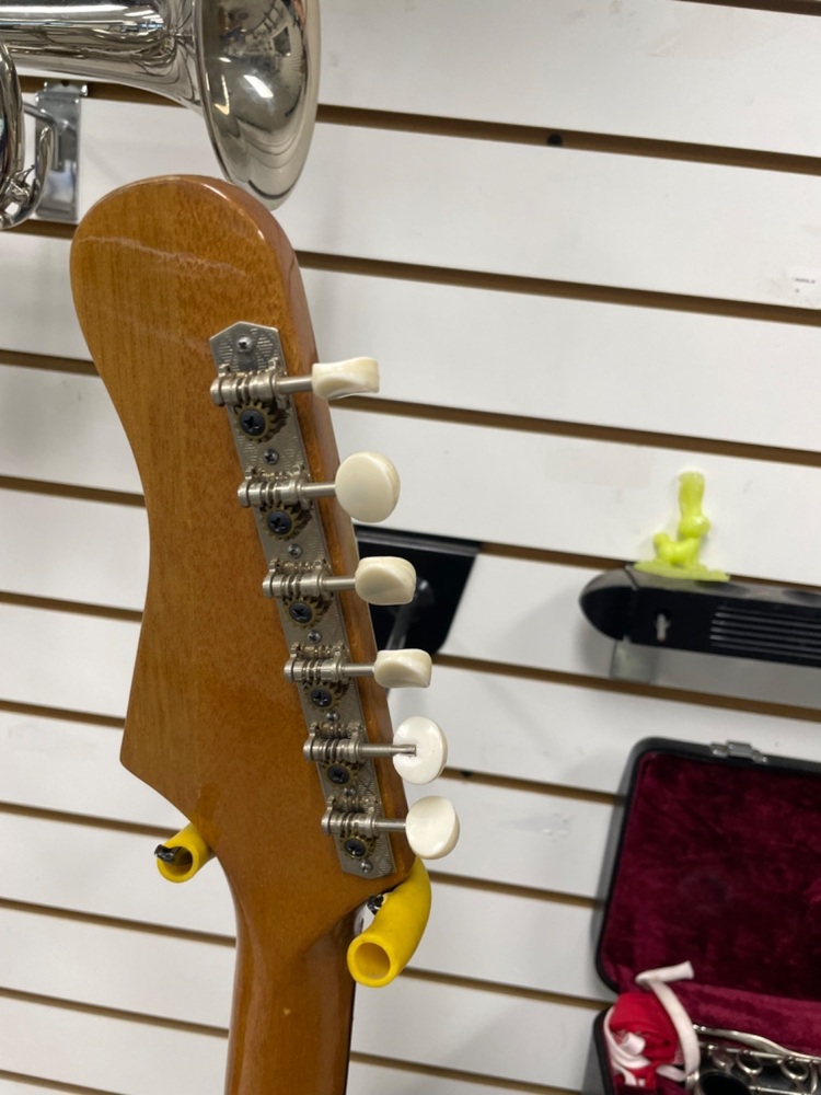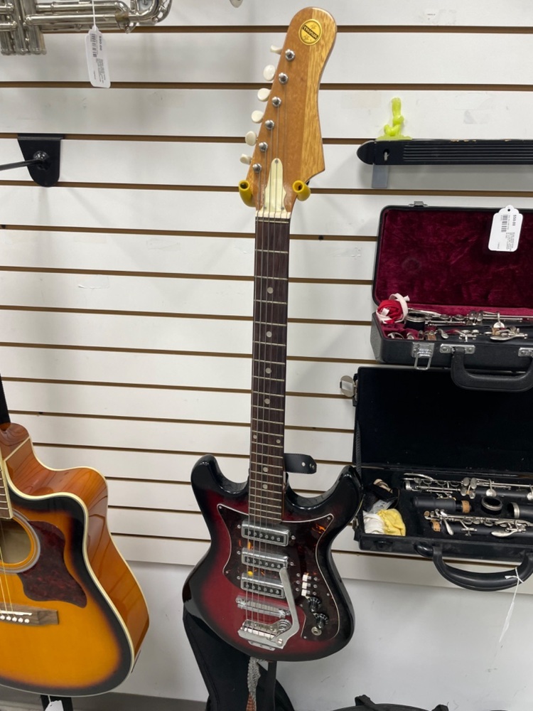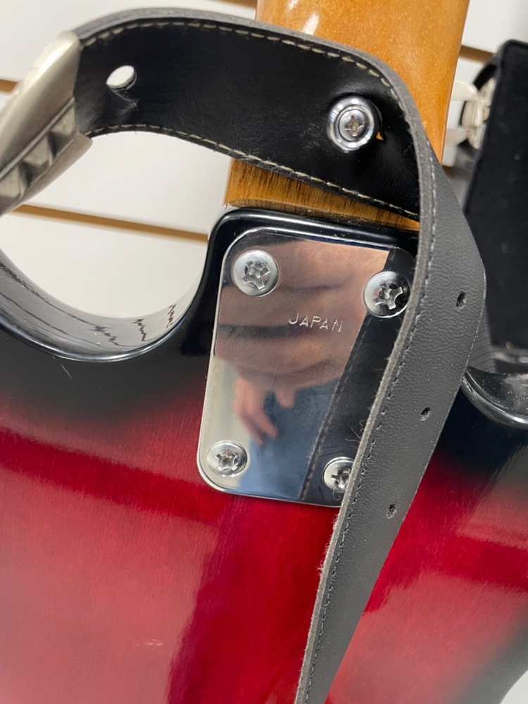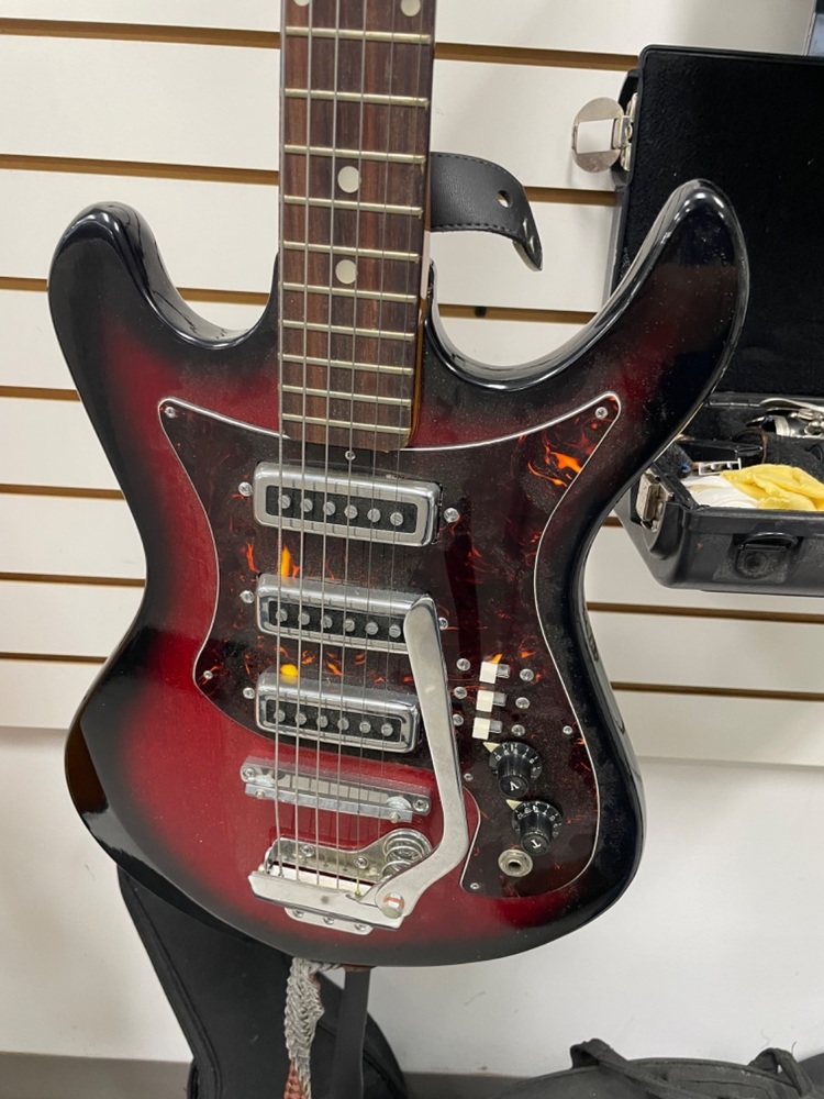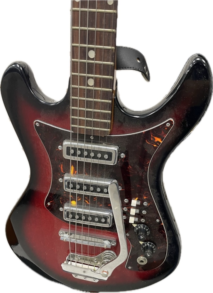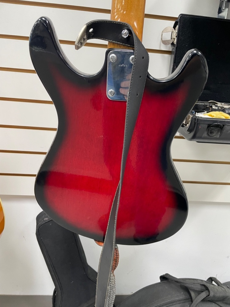 Music Gear Guitars PRESTIGE JAPAN ID: 319368 RED/BLACK ELECTRIC GUITAR W/ TORTOISESHELL PICKGUARD AND WHAMMY BAR AND STRAP.(VINTAGE)