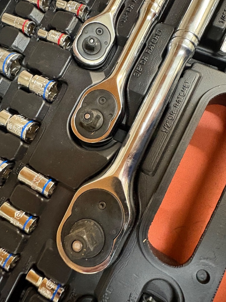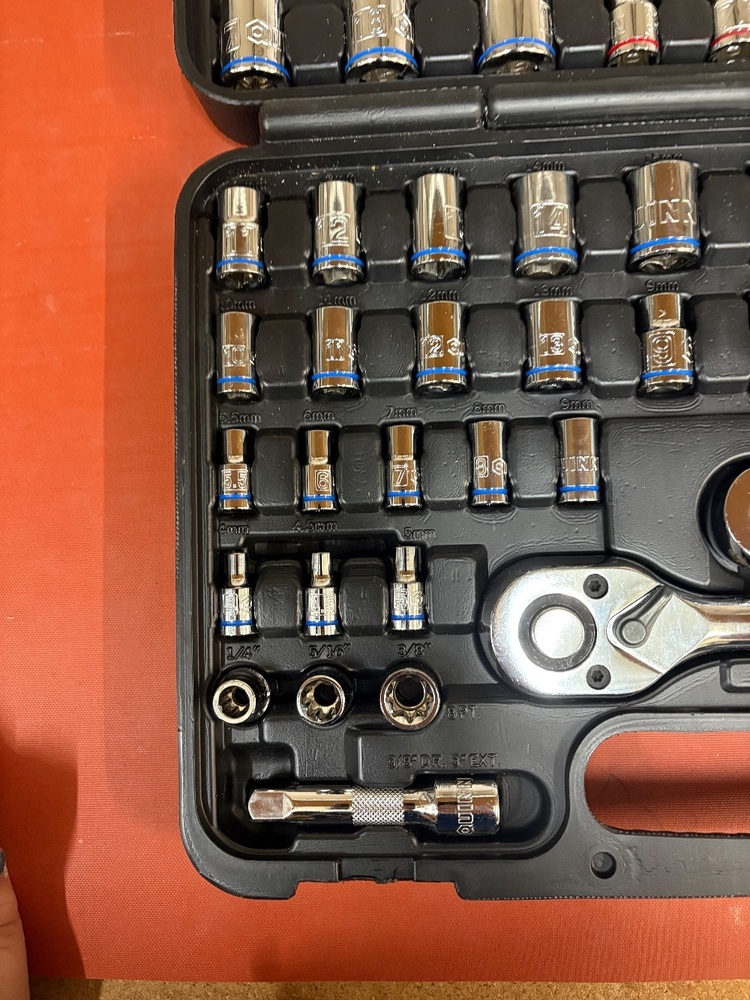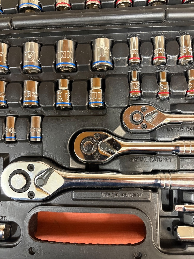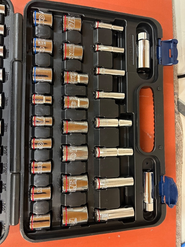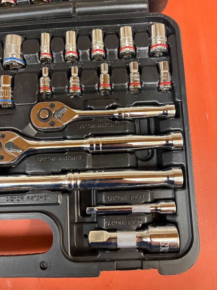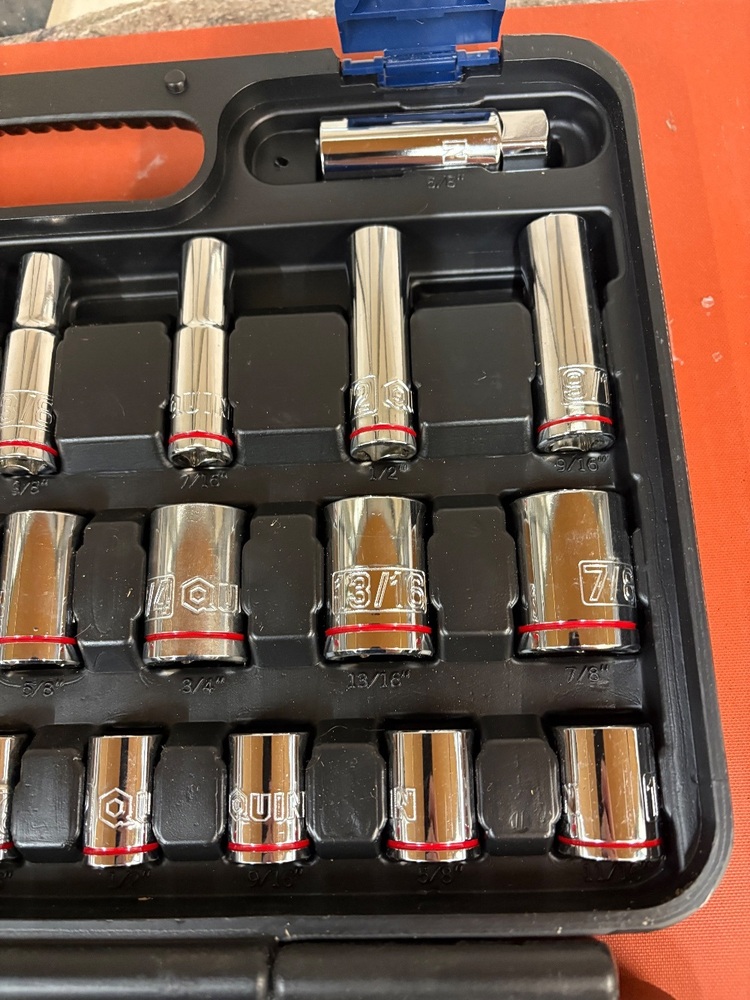 - (26) 1/4 in. sockets, (28) 3/8 in. sockets, and (6) 1/2 in. sockets