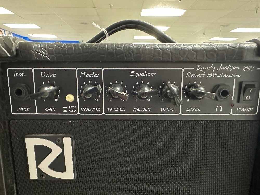 The Randy Jackson 15RJ guitar amp delivers 15 watts of pure tone in a compact, stylish package. Perfect for practice or small gigs, it features responsive EQ controls, built-in reverb, and a vintage-inspired design. Its custom-voiced speaker provides rich lows and crisp highs, making it versatile for blues, rock, or clean tones. Lightweight and portable, the 15RJ combines classic looks with modern performance for guitarists who demand quality sound without the bulk.