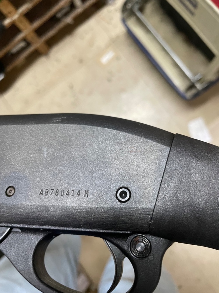 Unleashing might in simplicity, the Remington Arms 12GA. Pump 870 is more than just a shotgun. Its sleek black exterior reflects a menacing power, while the smooth onyx synthetic furniture projetcs an air of elegance. SN: AB780414M, it redefines the essence of a classic pump-action masterpiece.