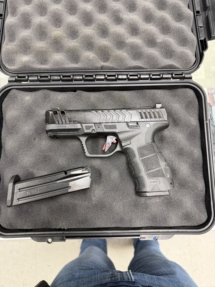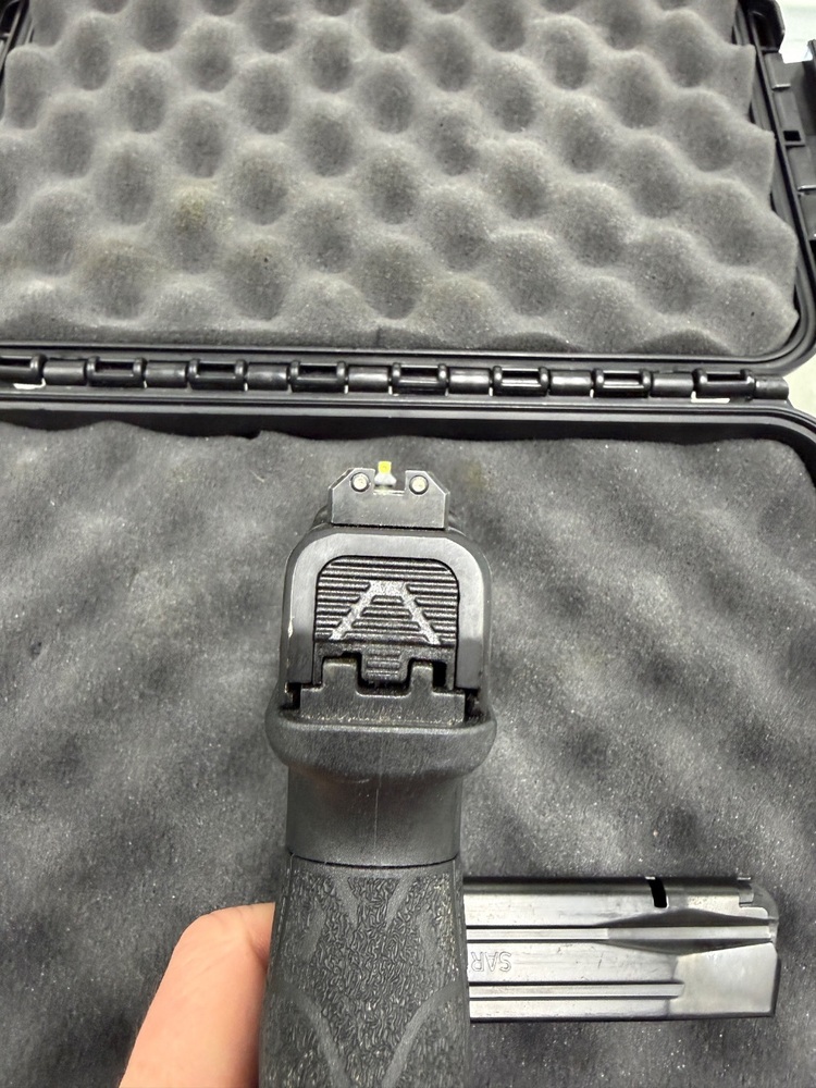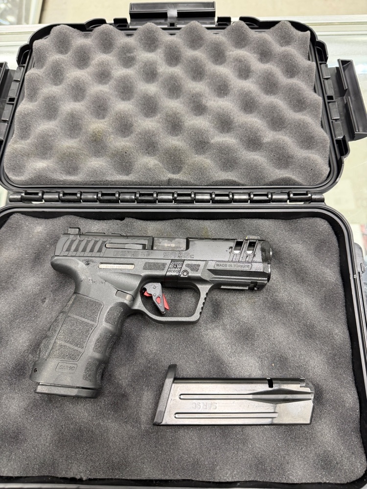 Unleash your inner marksman with the Sarsilmaz SAR9C Pistol. Boasting a slick, black-on-black finish, this semi-auto 9MM caliber beast provides top-notch accuracy. Comes with two mags ready for rapid-fire action. Original packaging included for collectors. Elevate your shooting experience with the SAR9C. SN: T1102-23DZ00273. Limitless power in every shot.