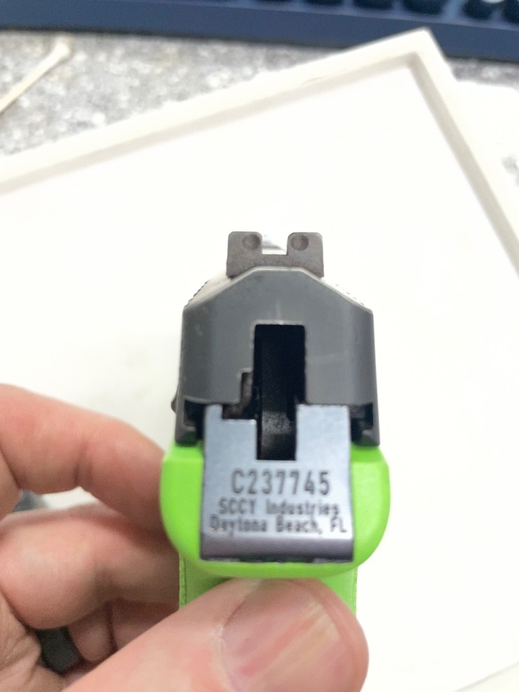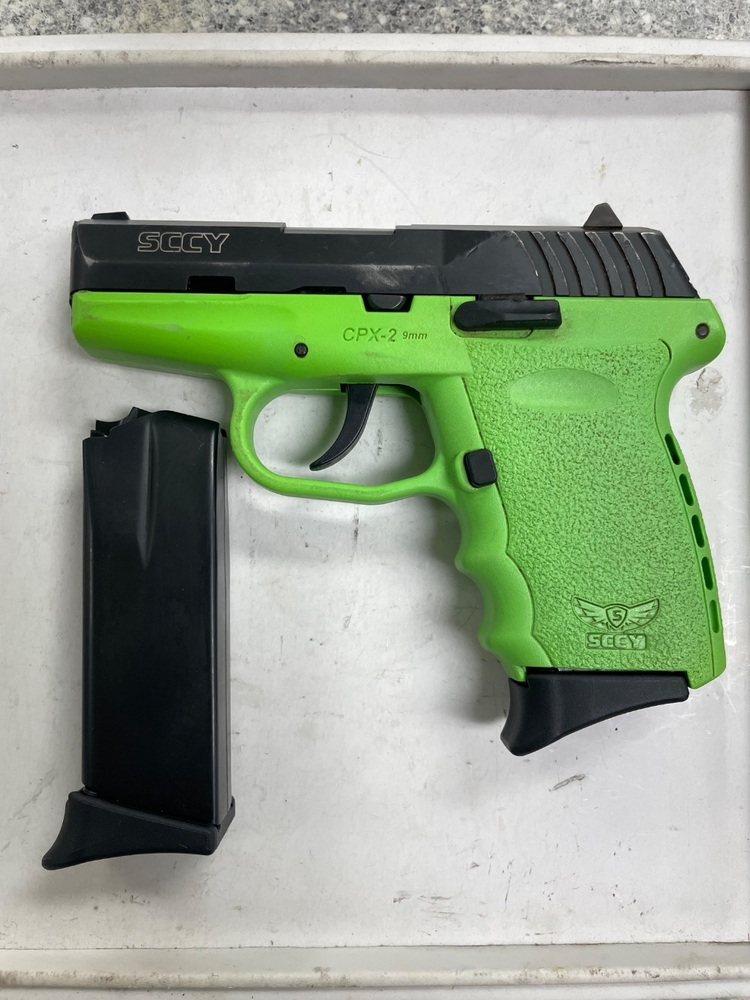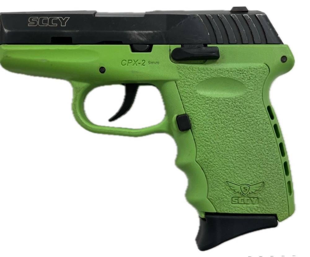 Unleash your inner marksman with the SCCY Industries Pistol Semi Auto 9MM Cal. CPX-2. This head-turner sports a sleek black slide and a bold green frame. Comes with 2 mags and the original box, making it the complete package for firearm enthusiasts!