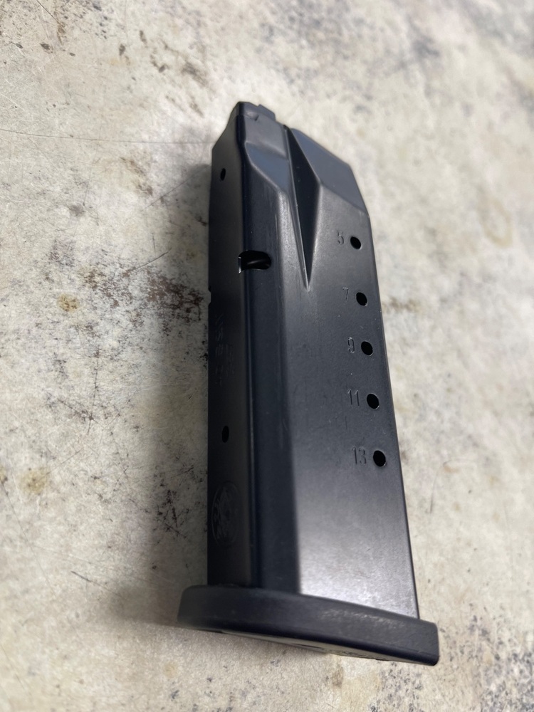 A Smith and Wesson M&P 2.0 magazine compatible with .40 S&W and .357, boasting a 13-round capacity. Durably constructed for reliable use. Suitable for different shooting experiences; from professional usage to casual practice. Ensure you're fully equipped and prepared for any challenge or need with this substantial, high-capacity magazine