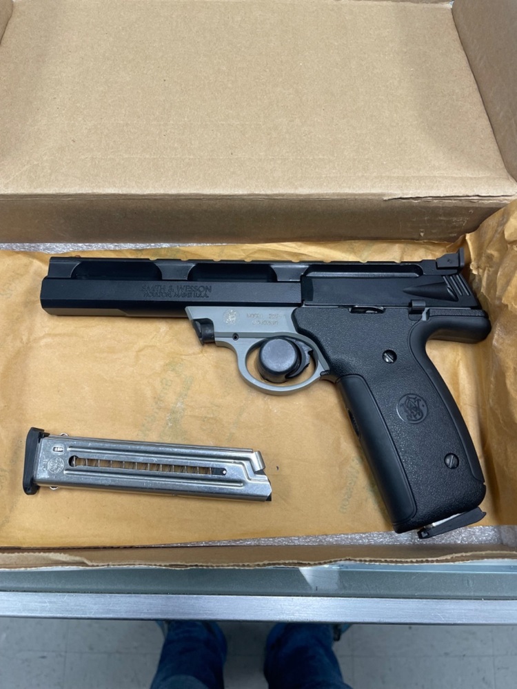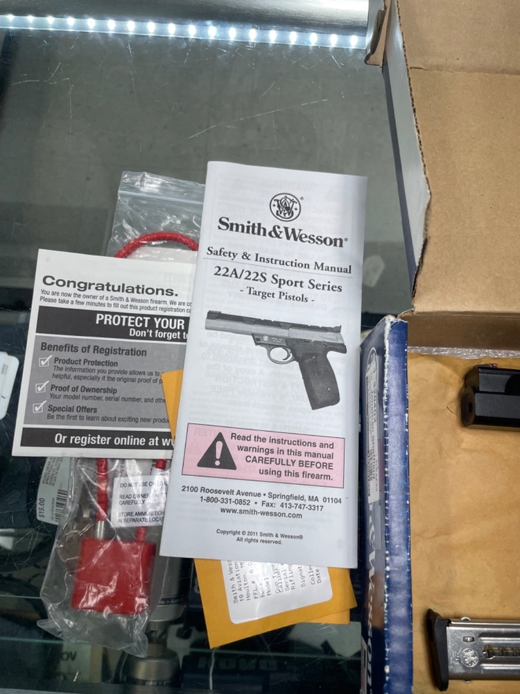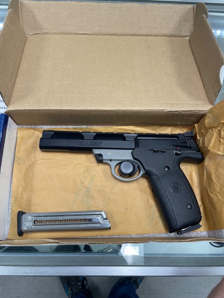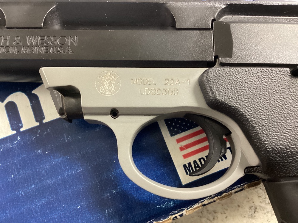 Log#22232 Smith & Wesson Pistol Semi Auto .22 LR Cal. 22A-1 BLACK SLIDE WITH GREY FRAME AND BLACK PLASTIC GRIPS WITH TWO 10 ROUND MAGS