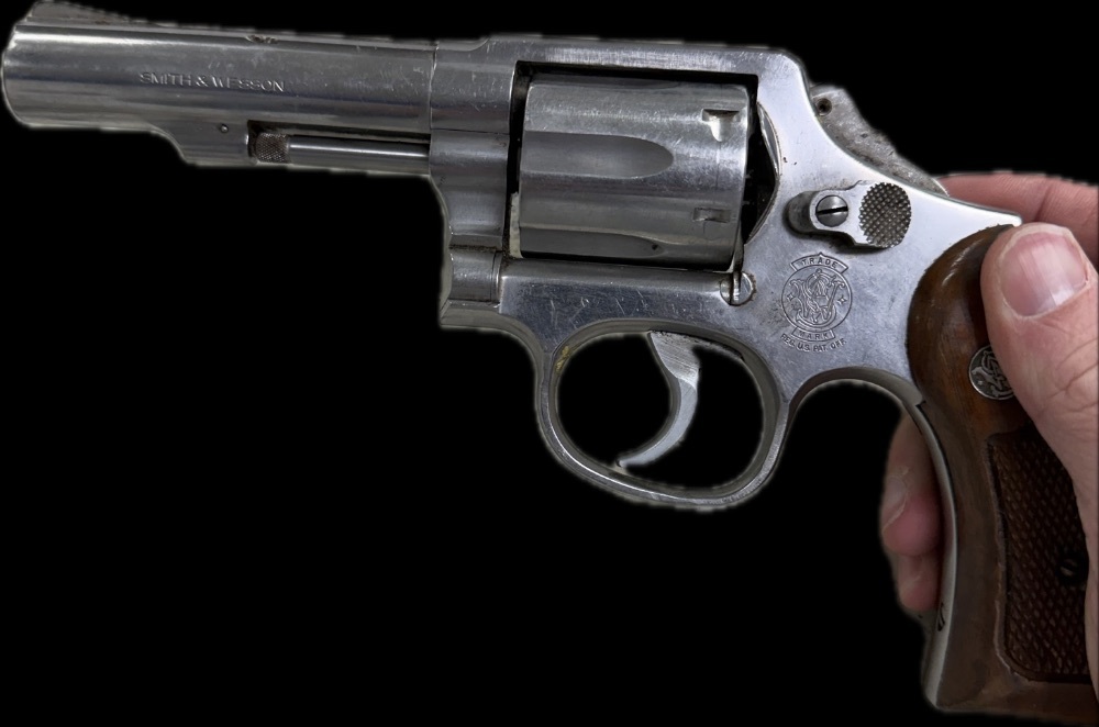 A timeless masterpiece, Smith & Wesson's .357 Mag Cal Revolver, gleams with a polished finish. AJP1081, its unique serial number, affirms its bold identity. Framed by robust wooden grips, it reflects the fusion of power, precision, and iconic design. Experience the unmatched legacy in 50 words.