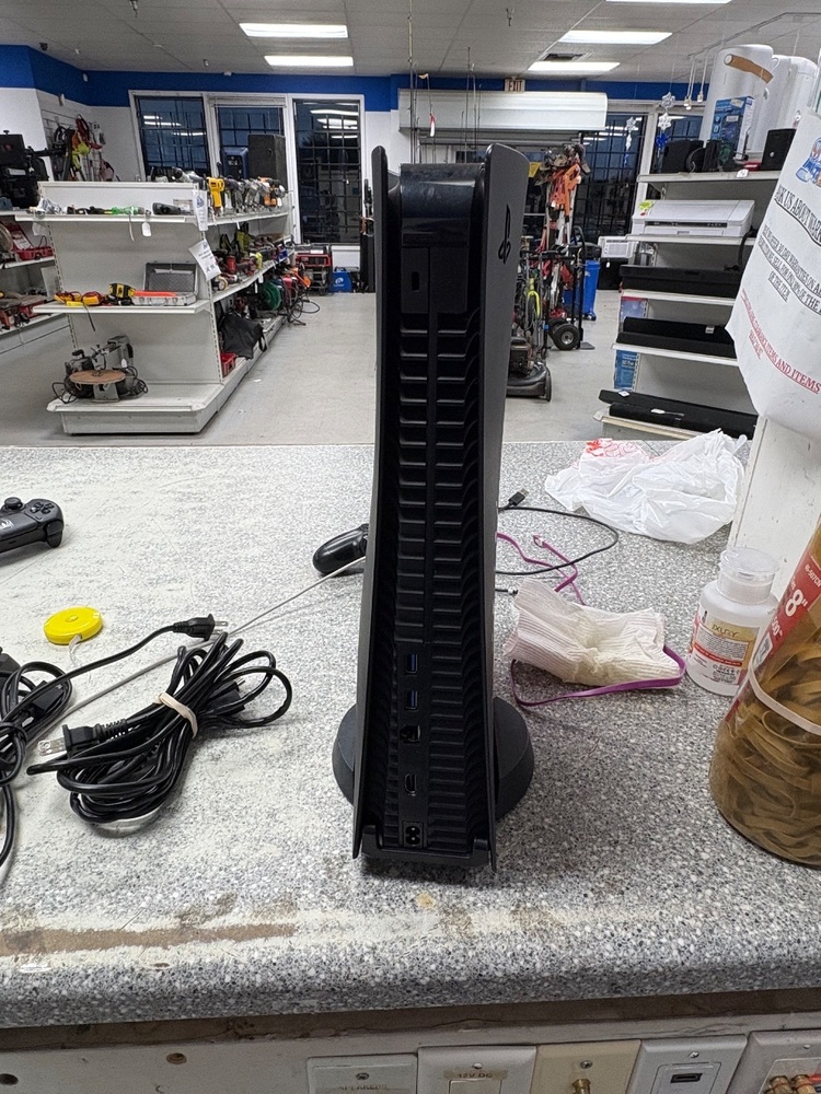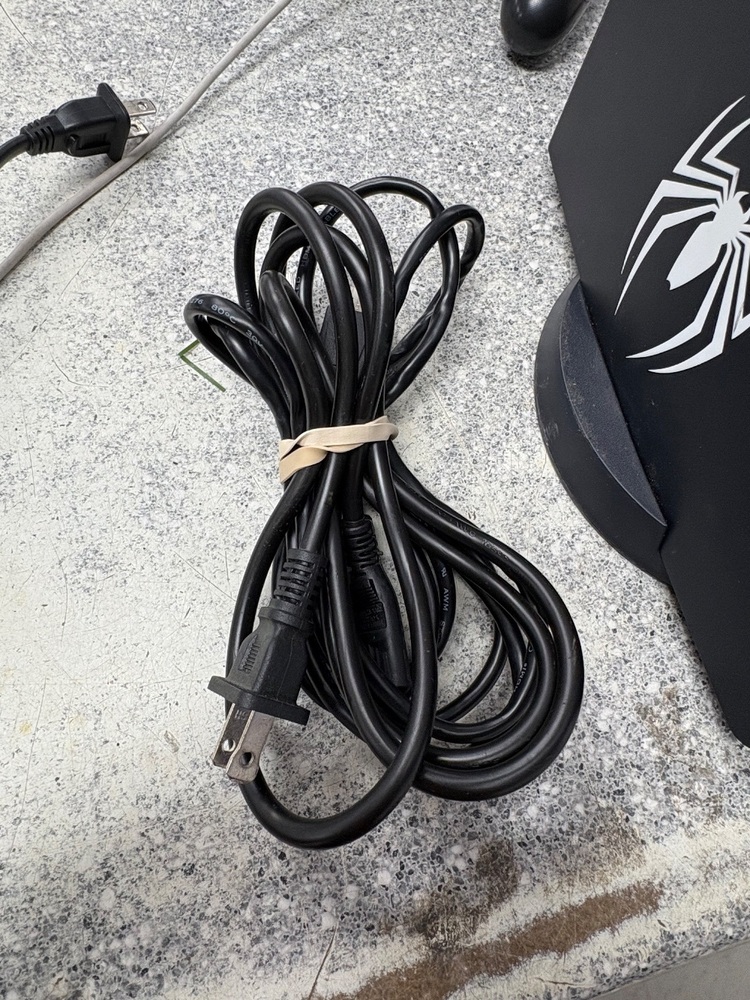 The Sony PlayStation PS5 Spider Man Edition features a custom-designed console, a Spider Man controller, and all necessary cables. It comes in its original packaging. Immerse yourself in high-speed gaming action, courtesy of this cutting-edge, special edition PS5 console.